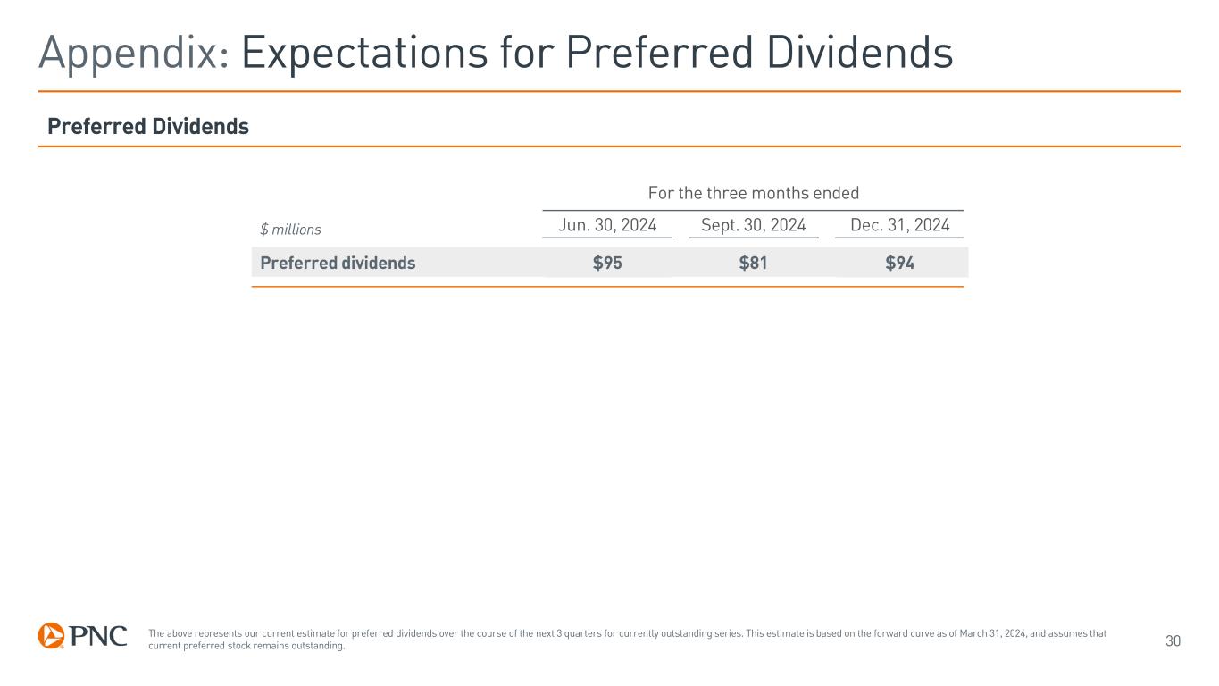 Appendix: Expectations for Preferred Dividends 30 The above represents our current estimate for preferred dividends over the course of the next 3 quarters for currently outstanding series. This estimate is based on the forward curve as of March 31, 2024, and assumes that current preferred stock remains outstanding. For the three months ended $ millions Jun. 30, 2024 Sept. 30, 2024 Dec. 31, 2024 Preferred dividends $95 $81 $94 Preferred Dividends