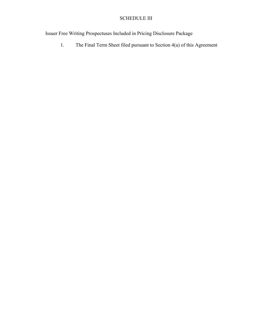 SCHEDULE III Issuer Free Writing Prospectuses Included in Pricing Disclosure Package 1. The Final Term Sheet filed pursuant to Section 4(a) of this Agreement