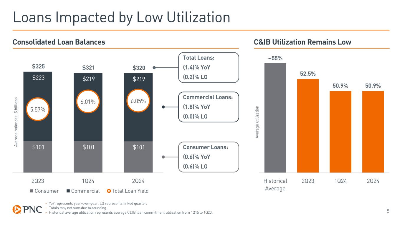 4 Avg. Loans Stable; Increased Securities and Grew Capital 2Q24 vs. 1Q24 2Q24 vs. 2Q23 Average balances, $ billions 2Q24 $ Change % Change $ Change % Change Total loans $319.9 $(0.7) – $(4.6) (1)% Investment securities $141.3 $5.9 4% $0.3 – Federal Reserve Bank (FRB) balances $40.7 $(7.1) (15)% $10.1 33% Deposits $417.2 $(2.9) (1)% $(8.5) (2)% Borrowed funds $77.5 $1.9 2% $11.8 18% Common shareholders’ equity $44.9 $0.5 1% $3.2 8% Period end 2Q24 1Q24 2Q24 vs. 1Q24 2Q23 2Q24 vs. 2Q23 Basel III CET1 capital ratio 10.2% 10.1% 10bps 9.5% 70bps AOCI ($ billions) $(7.4) $(8.0) $0.6 $(9.5) $2.1 Tangible book value per common share (TBV) (non-GAAP) $89.12 $85.70 4% $77.80 15% – AOCI represents accumulated other comprehensive income (loss). – Tangible book value per common share (non-GAAP) – See Reconciliation in the Appendix.