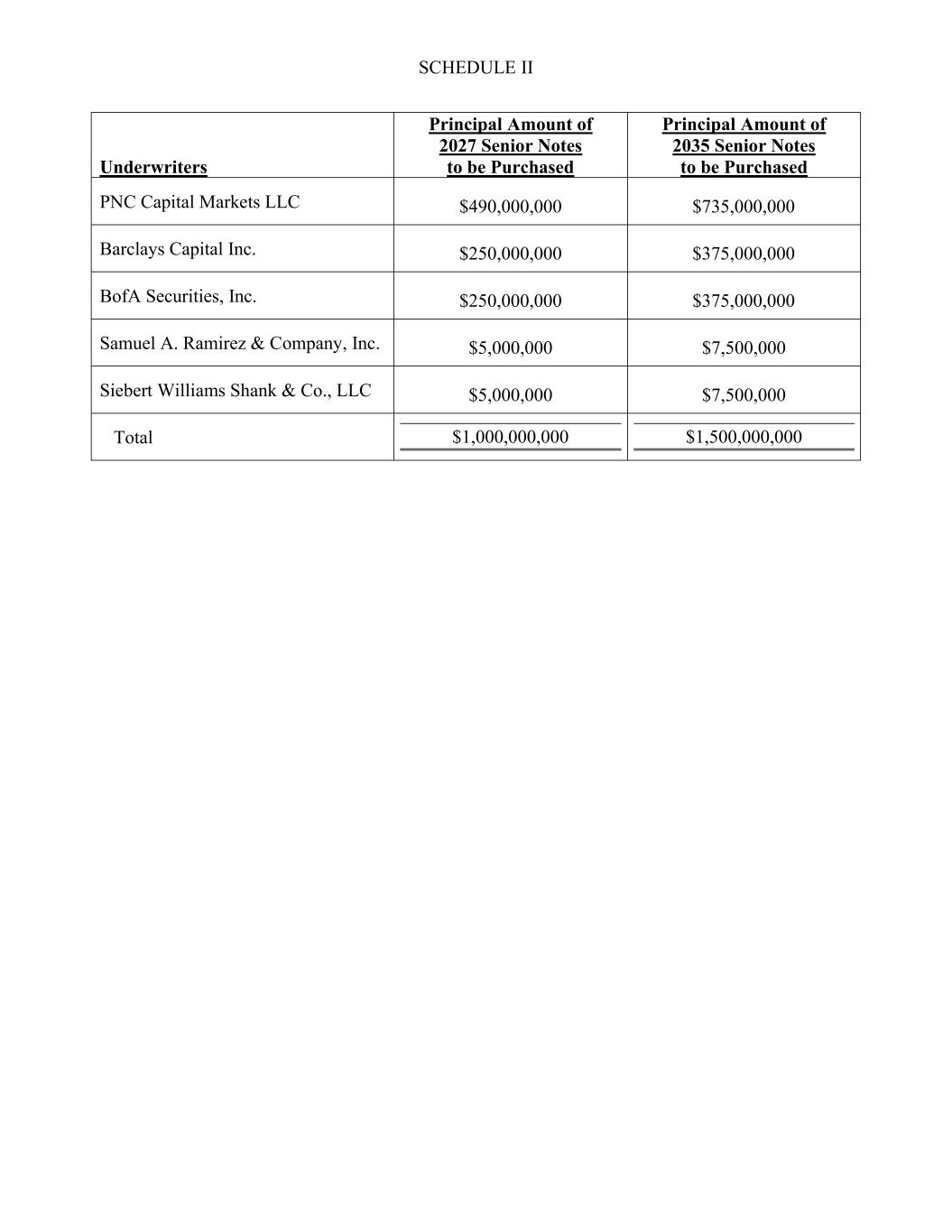 SCHEDULE II Underwriters Principal Amount of 2027 Senior Notes to be Purchased Principal Amount of 2035 Senior Notes to be Purchased PNC Capital Markets LLC $490,000,000 $735,000,000 Barclays Capital Inc. $250,000,000 $375,000,000 BofA Securities, Inc. $250,000,000 $375,000,000 Samuel A. Ramirez & Company, Inc. $5,000,000 $7,500,000 Siebert Williams Shank & Co., LLC $5,000,000 $7,500,000 Total $1,000,000,000 $1,500,000,000