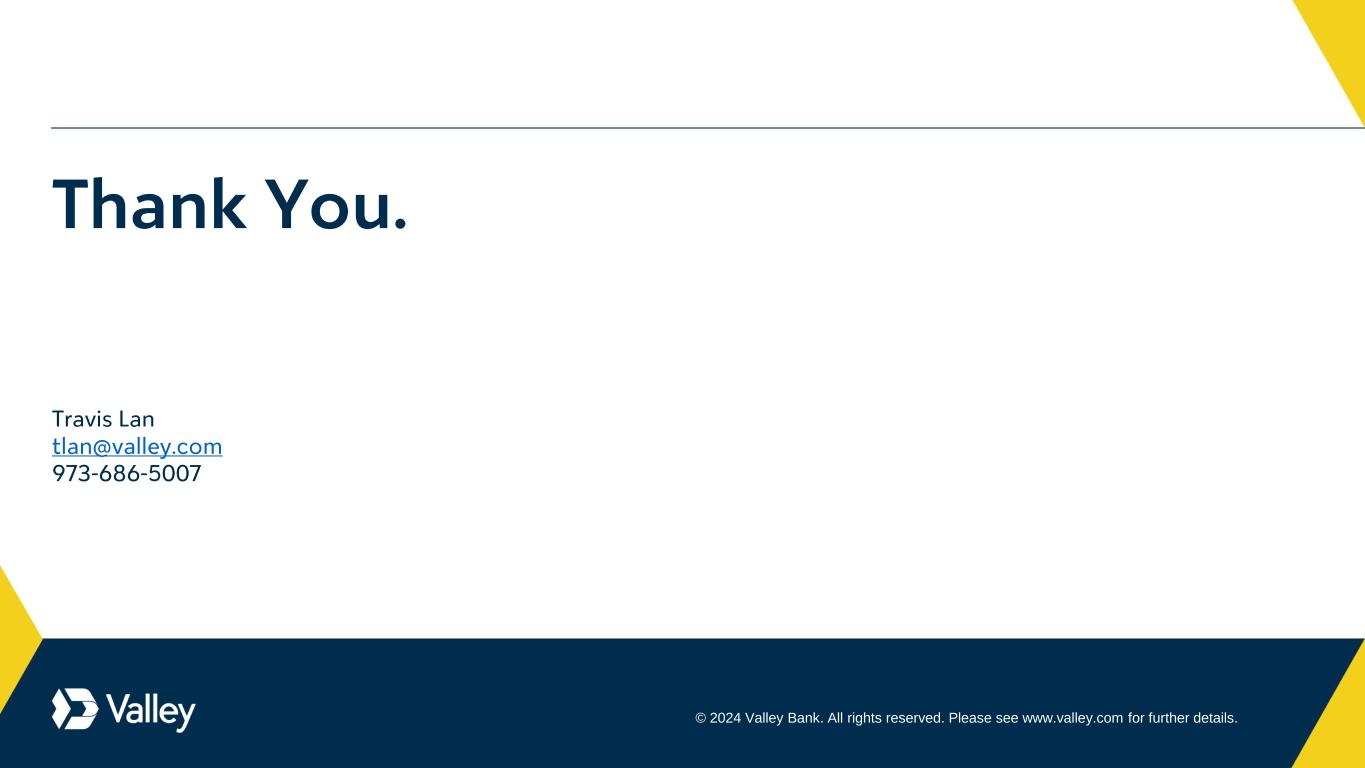 © 2024 Valley Bank. All rights reserved. Please see www.valley.com for further details.