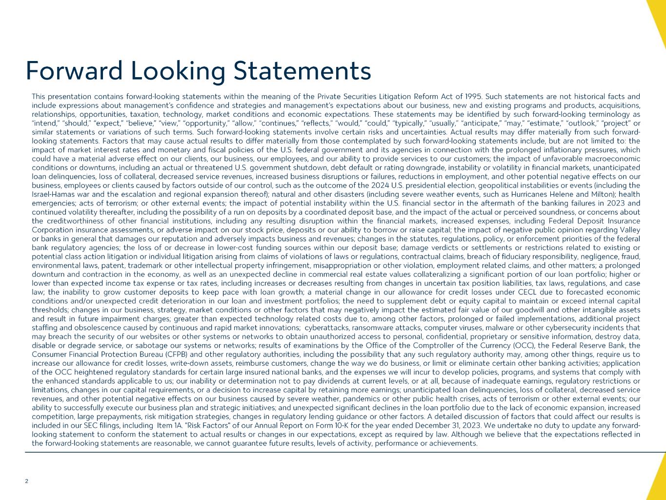 © 2024 Valley Bank. All rights reserved. Please see www.valley.com for further details. ▪ ▪ ▪ ▪