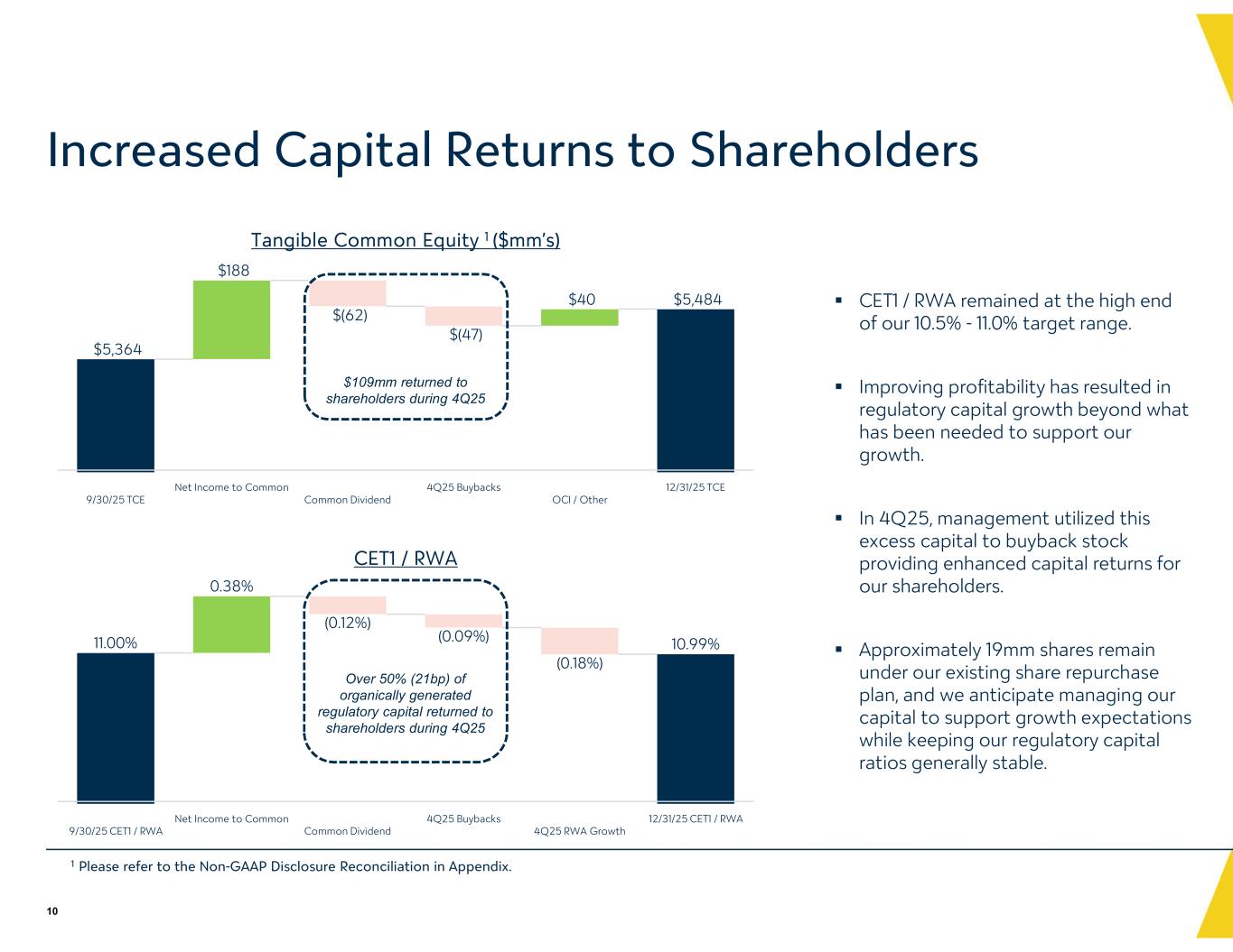 10 $109mm returned to shareholders during 4Q25 Over 50% (21bp) of organically generated regulatory capital returned to shareholders during 4Q25    