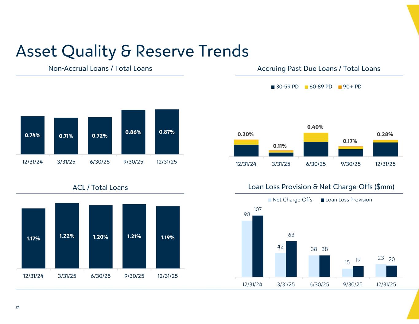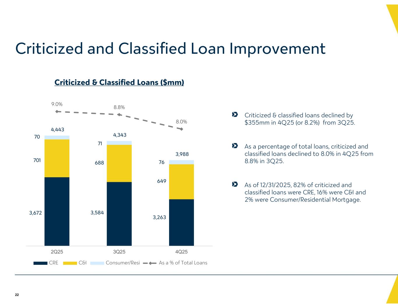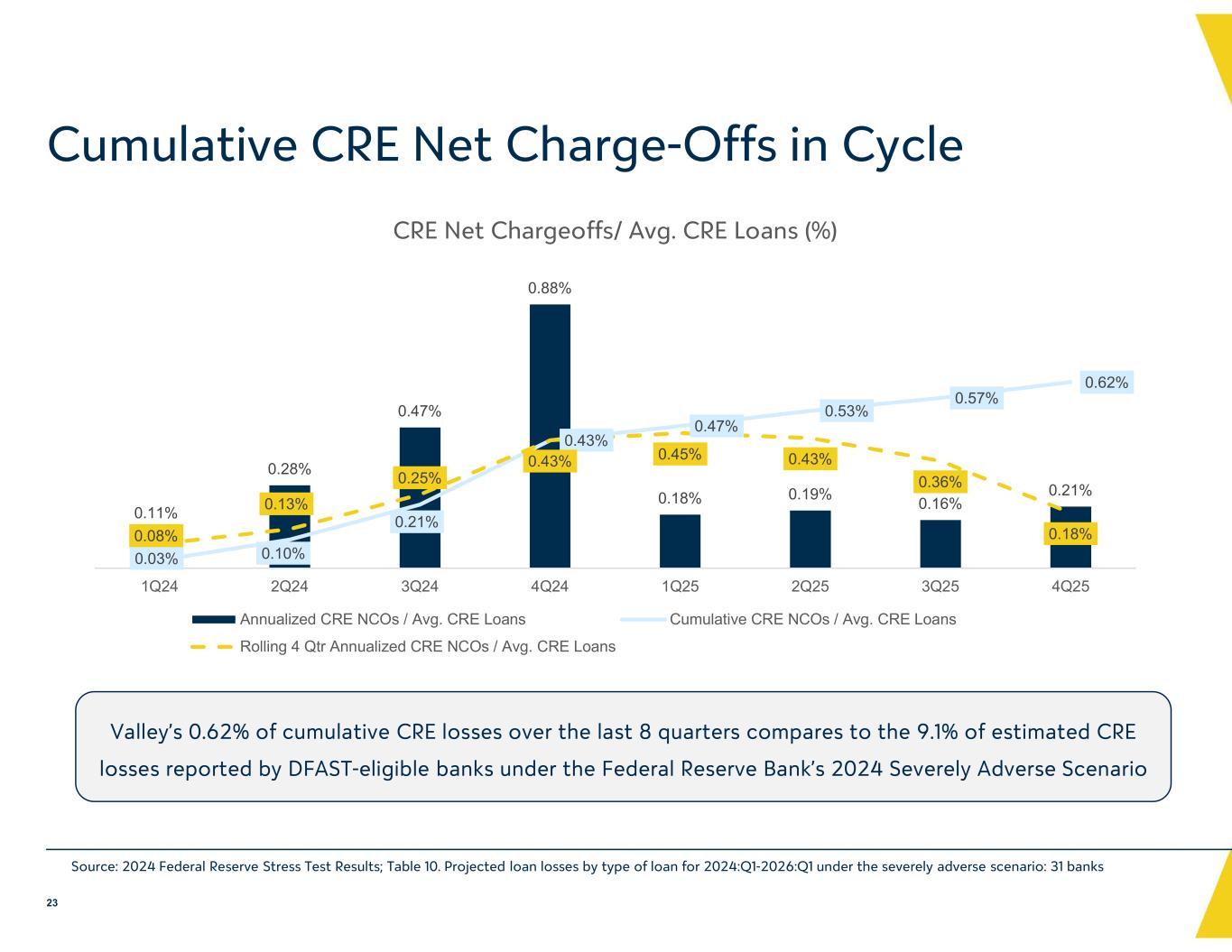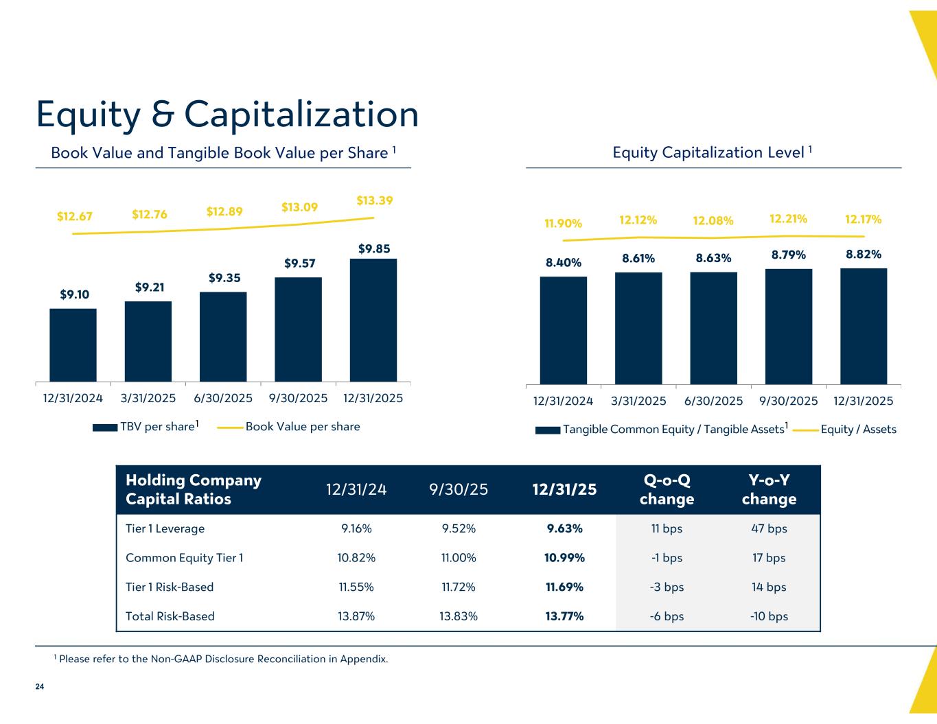 23 0.11% 0.28% 0.47% 0.88% 0.18% 0.19% 0.16% 0.21% 0.03% 0.10% 0.21% 0.43% 0.47% 0.53% 0.57% 0.62% 0.08% 0.13% 0.25% 0.43% 0.45% 0.43% 0.36% 0.18% 1Q24 2Q24 3Q24 4Q24 1Q25 2Q25 3Q25 4Q25 Annualized CRE NCOs / Avg. CRE Loans Cumulative CRE NCOs / Avg. CRE Loans Rolling 4 Qtr Annualized CRE NCOs / Avg. CRE Loans