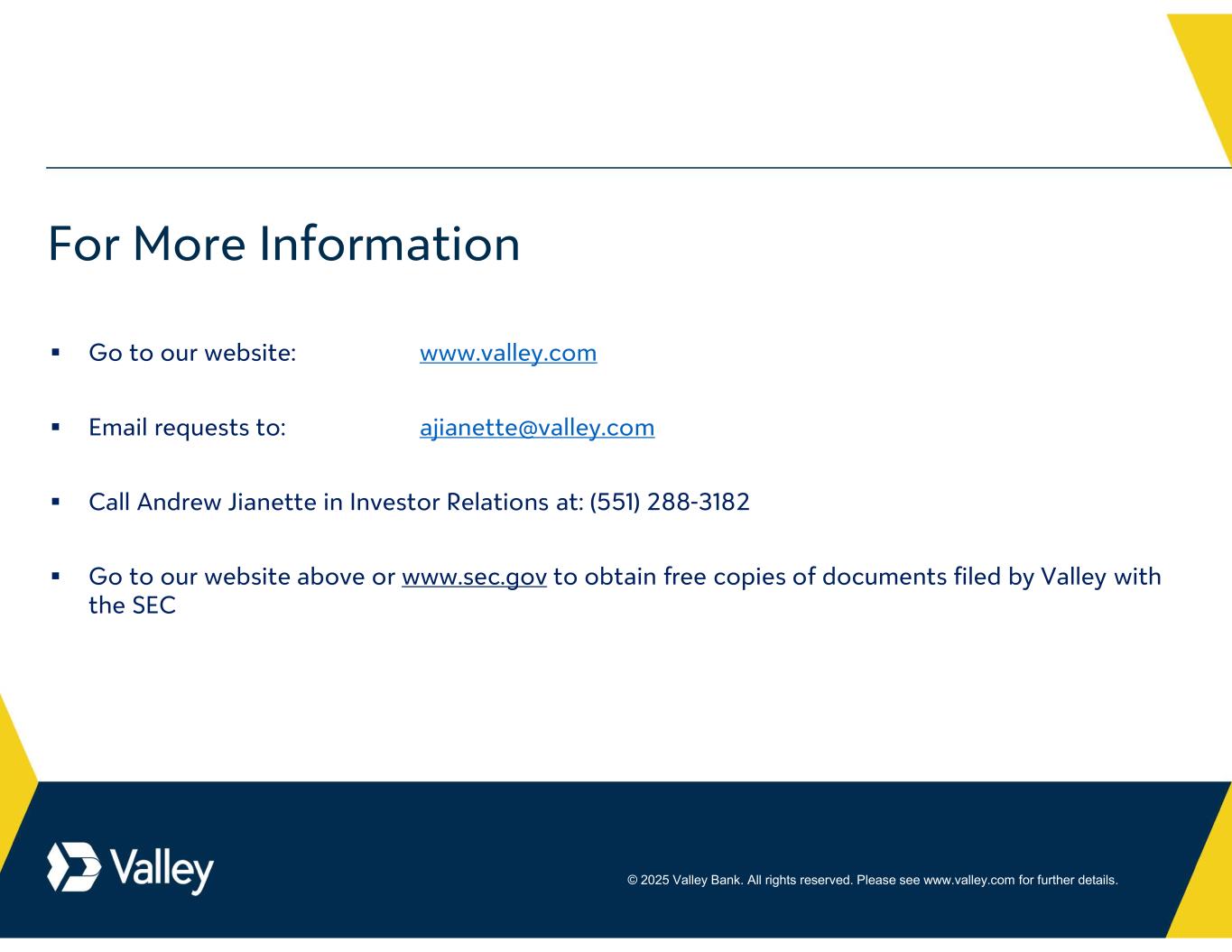 © 2025 Valley Bank. All rights reserved. Please see www.valley.com for further details.    