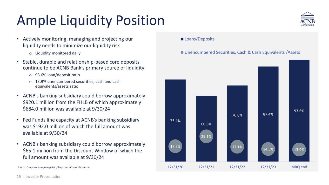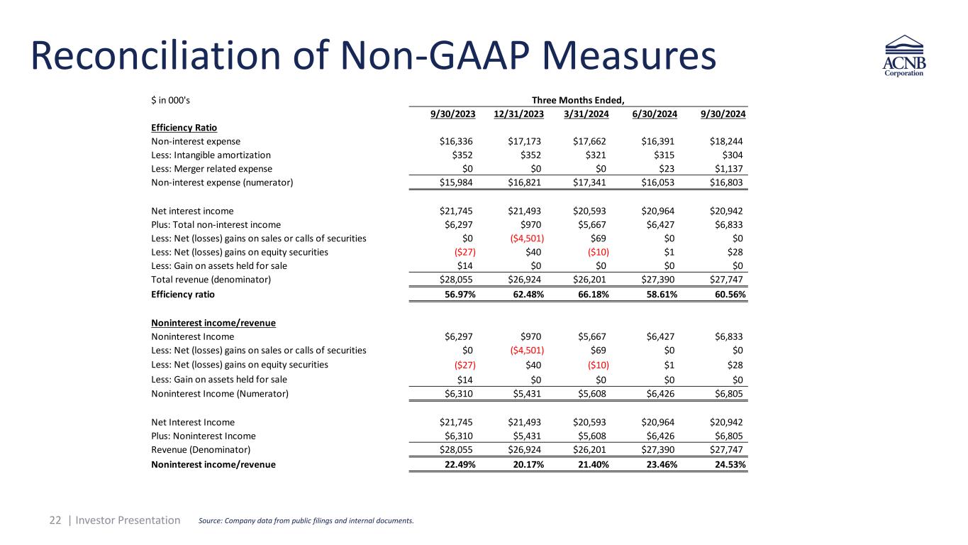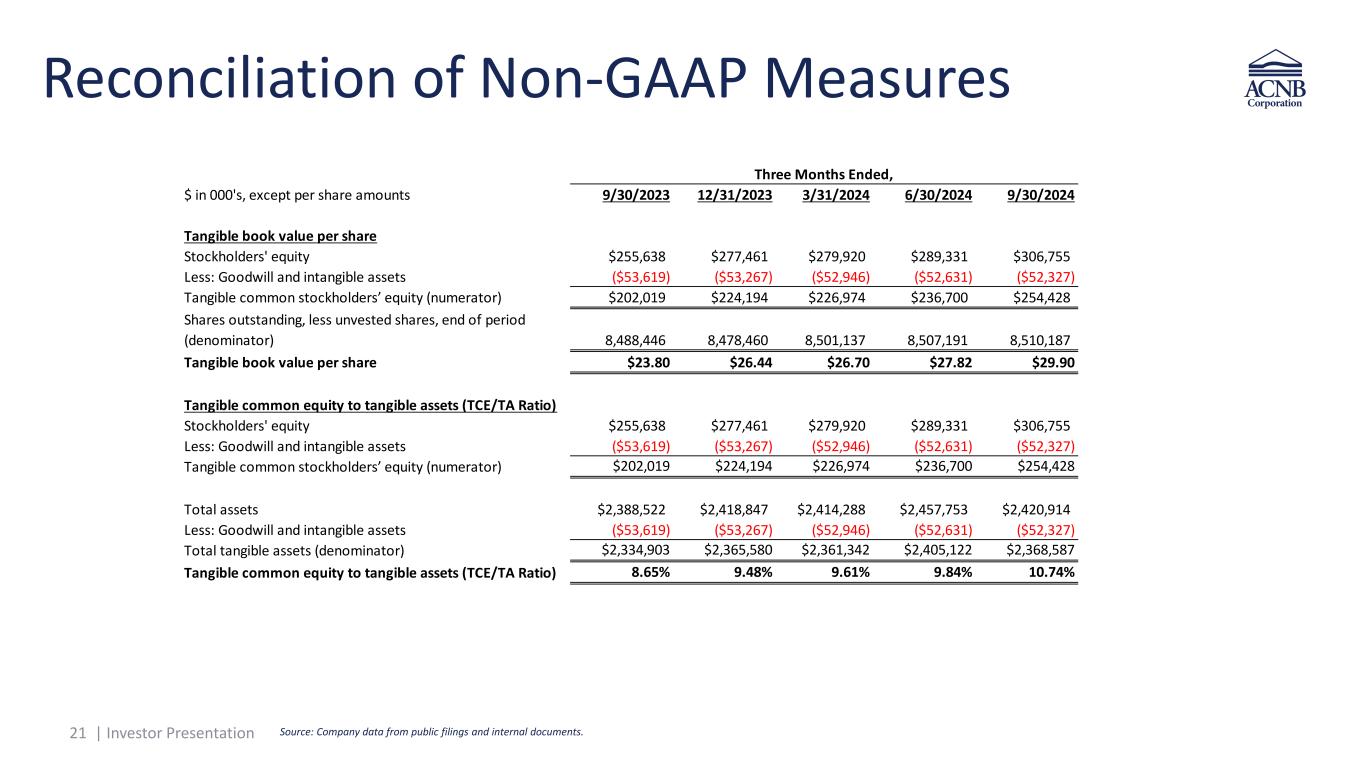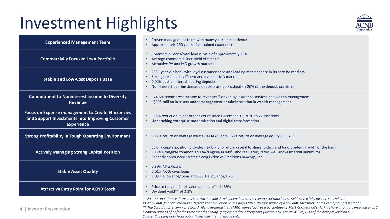 A C N B C O R P O R A T I O N Investor Presentation Third Quarter of 2024 Nasdaq: ACNB investor.acnb.com