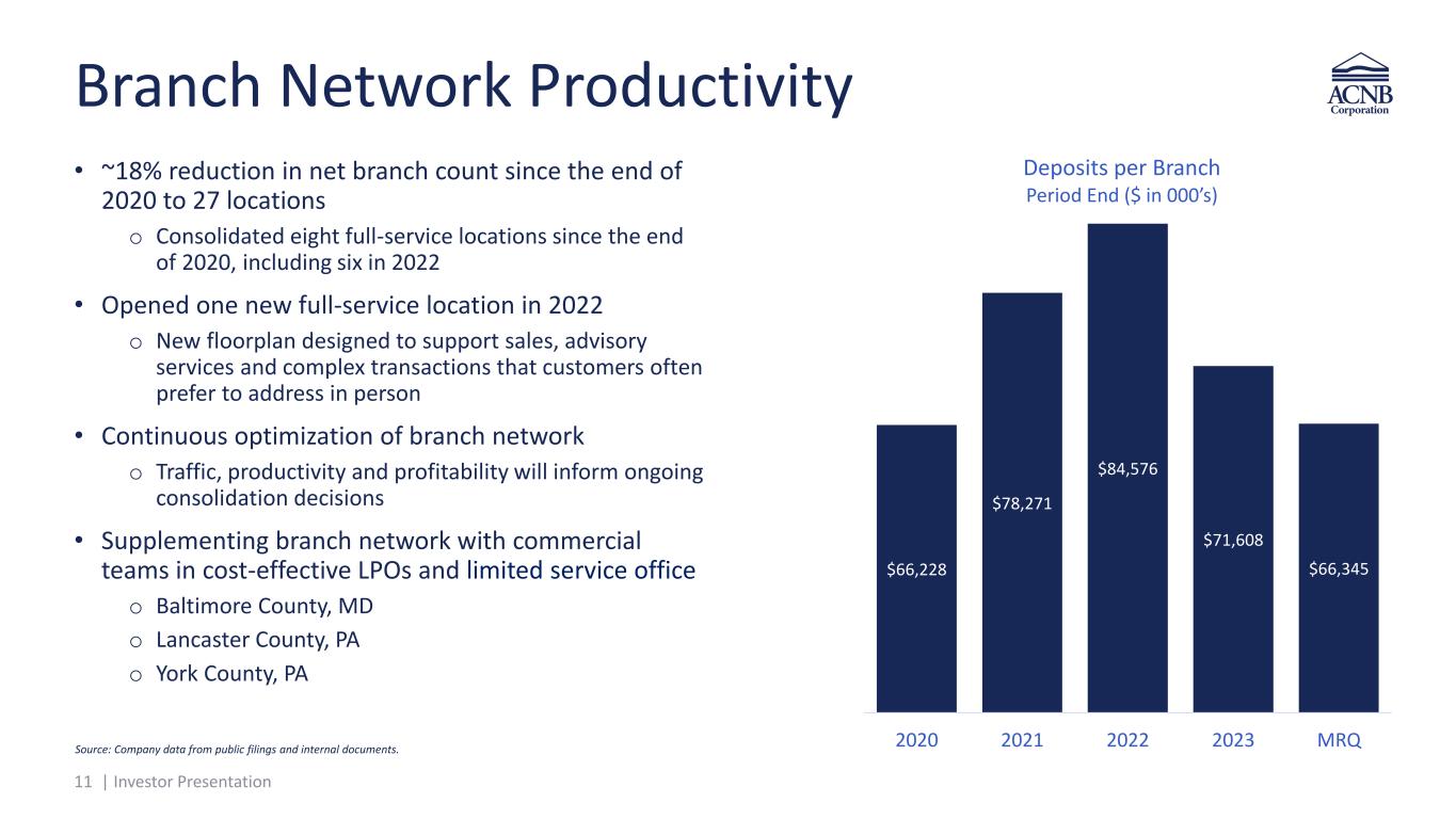 11 | Investor Presentation Branch Network Productivity • ~18% reduction in net branch count since the end of 2020 to 27 locations o Consolidated eight full-service locations since the end of 2020, including six in 2022 • Opened one new full-service location in 2022 o New floorplan designed to support sales, advisory services and complex transactions that customers often prefer to address in person • Continuous optimization of branch network o Traffic, productivity and profitability will inform ongoing consolidation decisions • Supplementing branch network with commercial teams in cost-effective LPOs and limited service office o Baltimore County, MD o Lancaster County, PA o York County, PA Source: Company data from public filings and internal documents. $66,228 $78,271 $84,576 $71,608 $66,345 2020 2021 2022 2023 MRQ Deposits per Branch Period End ($ in 000’s)