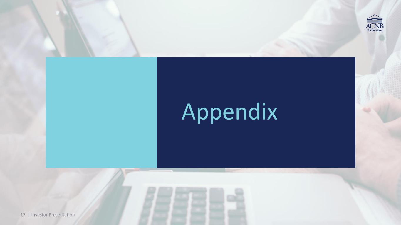 16 | Investor Presentation Stable Asset Quality • Committed to sound credit risk management, including conservative and disciplined underwriting practices, timely credit administration process and proactive customer relationship management • Linked quarter increase in non-performing loans to total loans was the result of one long-standing commercial relationship in the healthcare industry, comprised of both owner-occupied commercial real estate and commercial and industrial loans All dollar amounts in thousands; non-performing loans consist of nonaccrual loans and 90+ days past due and still accruing. * NCOs annualized. Source: Company data from public filings and internal documents. $3,594 $4,173 $3,935 $3,136 $6,571 0.22% 0.26% 0.24% 0.19% 0.39% 3Q23 4Q23 1Q24 2Q24 3Q24 Non-Performing Loans NPLs/Loans $134 $81 $20 $20 $29 0.03% 0.02% 0.00% 0.00% 0.01% 3Q23 4Q23 1Q24 2Q24 3Q24 Net Charge Offs NCOs*/Average Loans $19,264 $19,969 $20,172 $17,162 $17,214 1.19% 1.23% 1.21% 1.02% 1.03% 3Q23 4Q23 1Q24 2Q24 3Q24 Allowance for Credit Losses Allowance/Loans 536% 479% 513% 547% 262% Allowance/NPLs