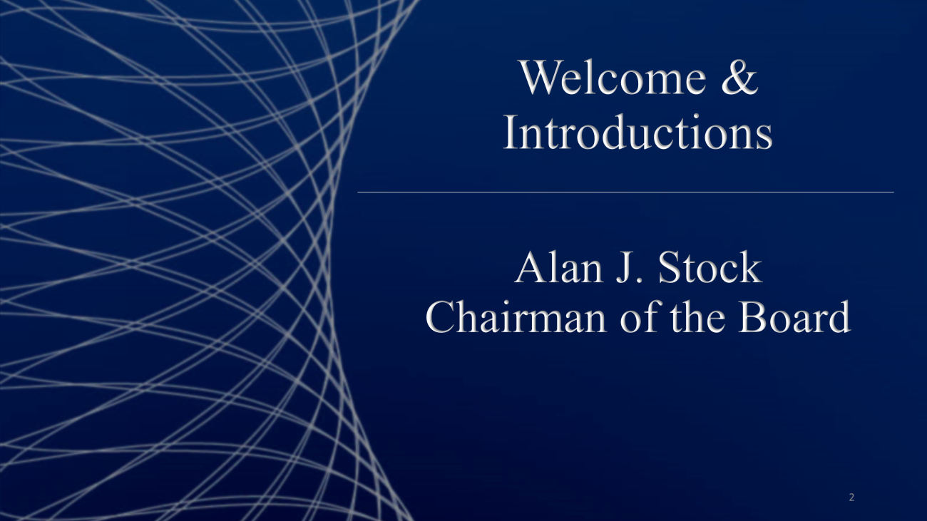 Welcome & Introductions Alan J. Stock Chairman of the Board 2
