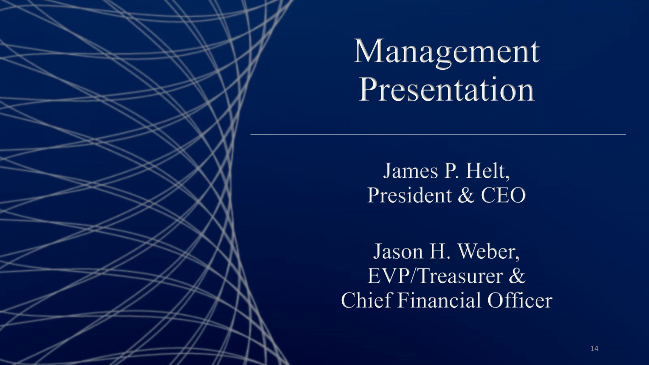 Management Presentation James P. Helt, President & CEO Jason H. Weber, EVP/Treasurer & Chief Financial Officer 14