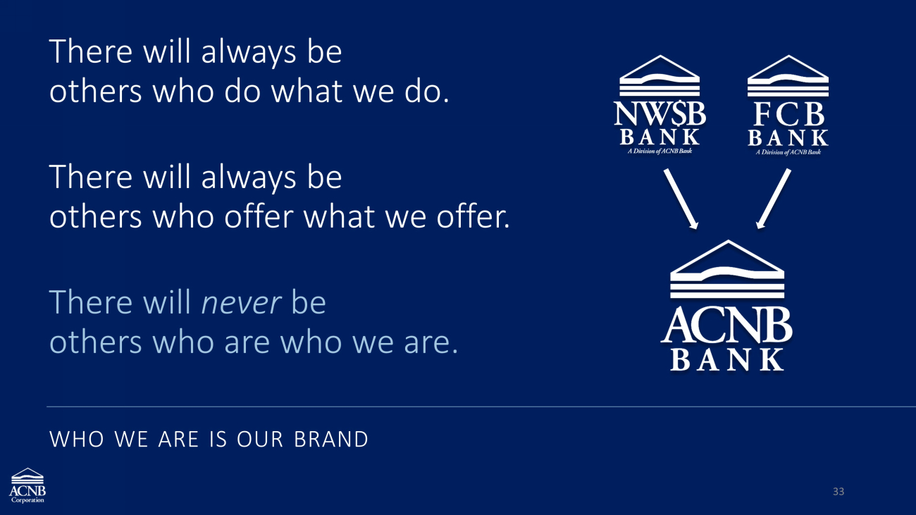 There will always be others who do what we do. WHO WE ARE IS OUR BRAND There will always be others who offer what we offer. There will never be others who are who we are. 33