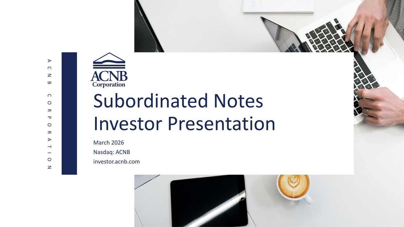 A C N B C O R P O R A T I O N Subordinated Notes Investor Presentation March 2026 Nasdaq: ACNB investor.acnb.com