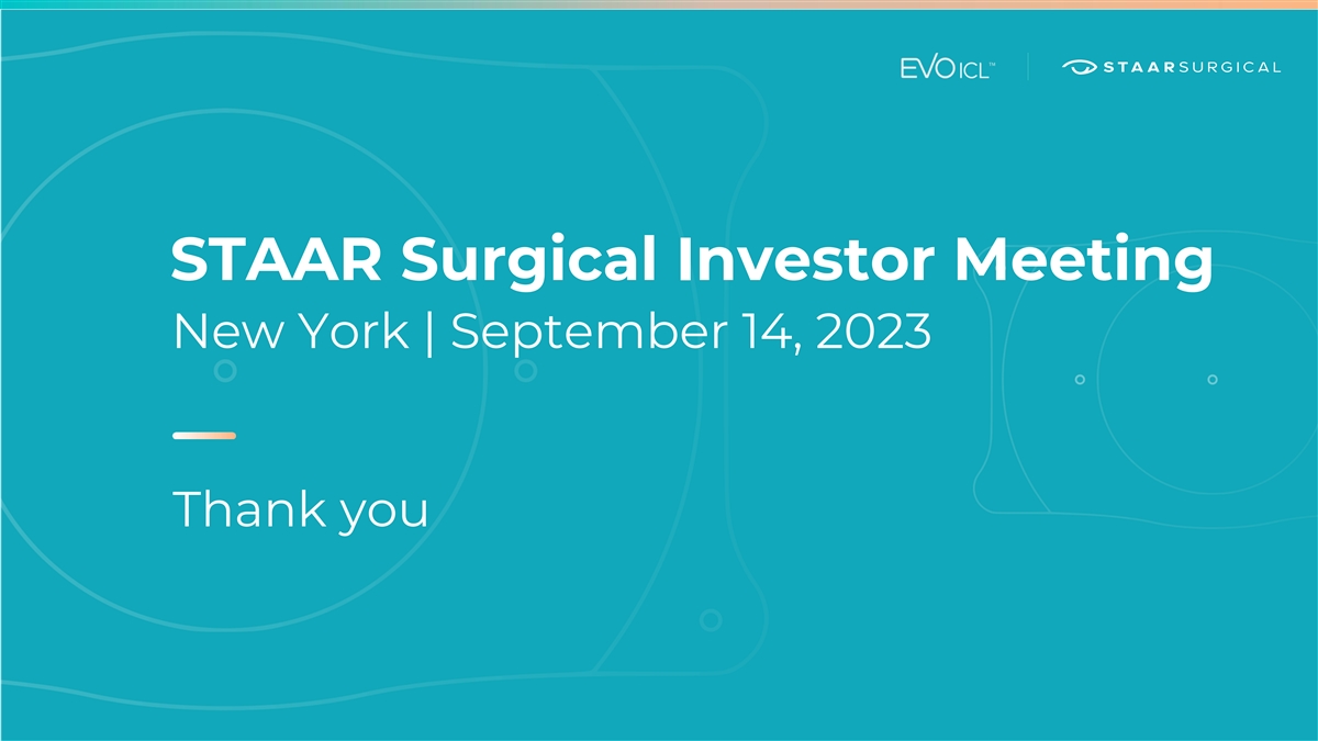 STAAR Surgical Investor Meeting New York | September 14, 2023 Thank you
