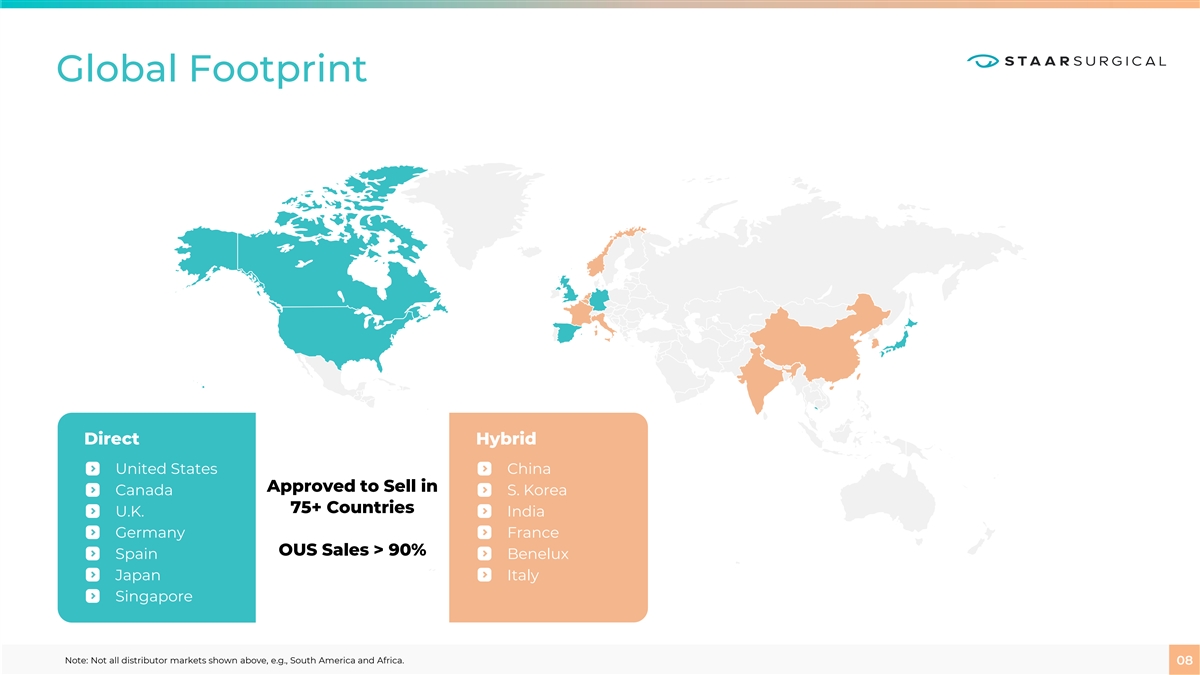 Global Footprint Direct Hybrid United States China Approved to Sell in Canada S. Korea 75+ Countries U.K. India Germany France OUS Sales > 90% Spain Benelux Japan Italy Singapore Note: Not all distributor markets shown above, e.g., South America and Africa. 08