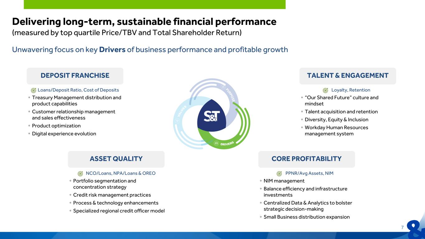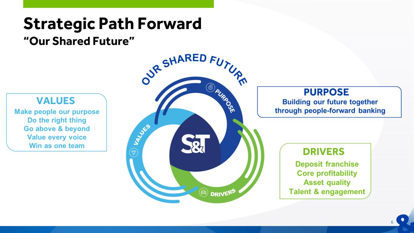 Forward Looking Statements and Risk Factors This information contains or incorporates statements that we believe are “forward-looking statements” within the meaning of the Private Securities Litigation Reform Act of 1995. Forward-looking statements generally relate to our financial condition, results of operations, plans, objectives, outlook for earnings, revenues, expenses, capital and liquidity levels and ratios, asset levels, asset quality, financial position and other matters regarding or affecting S&T and its future business and operations. Forward-looking statements are typically identified by words or phrases such as “will likely result,” “expect,” “anticipate,” “estimate,” “forecast,” “project,” “intend,” “believe,” “assume,” “strategy,” “trend,” “plan,” “outlook,” “outcome,” “continue,” “remain,” “potential,” “opportunity,” “comfortable,” “current,” “position,” “maintain,” “sustain,” “seek,” “achieve,” and variations of such words and similar expressions, or future or conditional verbs such as will, would, should, could or may. Although we believe the assumptions upon which these forward-looking statements are based are reasonable, any of these assumptions could prove to be inaccurate and the forward-looking statements based on these assumptions could be incorrect. The matters discussed in these forward-looking statements are subject to various risks, uncertainties and other factors that could cause actual results and trends to differ materially from those made, projected, or implied in or by the forward-looking statements depending on a variety of uncertainties or other factors including, but not limited to: credit losses and the credit risk of our commercial and consumer loan products; changes in the level of charge-offs and changes in estimates of the adequacy of the allowance for credit losses, or ACL; cyber-security concerns; rapid technological developments and changes; operational risks or risk management failures by us or critical third parties, including fraud risk; our ability to manage our reputational risks; sensitivity to the interest rate environment, a rapid increase in interest rates or a change in the shape of the yield curve; a change in spreads on interest-earning assets and interest-bearing liabilities; the transition from LIBOR as a reference rate; regulatory supervision and oversight, including changes in regulatory capital requirements and our ability to address those requirements; unanticipated changes in our liquidity position; unanticipated changes in regulatory and governmental policies impacting interest rates and financial markets; changes in accounting policies, practices or guidance; legislation affecting the financial services industry as a whole, and S&T, in particular; developments affecting the industry and the soundness of financial institutions and further disruption to the economy and U.S. banking system; the outcome of pending and future litigation and governmental proceedings; increasing price and product/service competition; the ability to continue to introduce competitive new products and services on a timely, cost-effective basis; managing our internal growth and acquisitions; the possibility that the anticipated benefits from acquisitions cannot be fully realized in a timely manner or at all, or that integrating the acquired operations will be more difficult, disruptive or costly than anticipated; containing costs and expenses; reliance on significant customer relationships; an interruption or cessation of an important service by a third-party provider; our ability to attract and retain talented executives and employees; general economic or business conditions, including the strength of regional economic conditions in our market area; environmental, social and governance practices and disclosures, including climate change, hiring practices, the diversity of the work force, and racial and social justice issues; deterioration of the housing market and reduced demand for mortgages; deterioration in the overall macroeconomic conditions or the state of the banking industry that could warrant further analysis of the carrying value of goodwill and could result in an adjustment to its carrying value resulting in a non-cash charge to net income; the stability of our core deposit base and access to contingency funding; re-emergence of turbulence in significant portions of the global financial and real estate markets that could impact our performance, both directly, by affecting our revenues and the value of our assets and liabilities, and indirectly, by affecting the economy generally and access to capital in the amounts, at the times and on the terms required to support our future businesses. Many of these factors, as well as other factors, are described in our Annual Report on Form 10-K for the year ended December 31, 2022, including Part I, Item 1A-"Risk Factors" and any of our subsequent filings with the SEC. Forward-looking statements are based on beliefs and assumptions using information available at the time the statements are made. We caution you not to unduly rely on forward-looking statements because the assumptions, beliefs, expectations and projections about future events may, and often do, differ materially from actual results. Any forward-looking statement speaks only as to the date on which it is made, and we undertake no obligation to update any forward-looking statement to reflect developments occurring after the statement is made. Non-GAAP Financial Measures In addition to the traditional measures presented in accordance with Generally Accepted Accounting Principles (GAAP), S&T management uses and this presentation contains or references certain non-GAAP financial measures, such as net interest income on a fully taxable equivalent basis. S&T believes these non-GAAP financial measures provide information useful to investors in