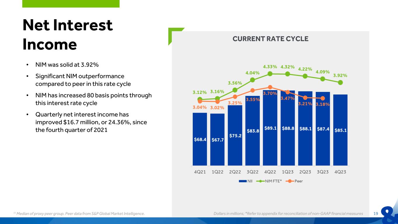 • NIM was solid at 3.92% • Significant NIM outperformance compared to peer in this rate cycle • NIM has increased 80 basis points through this interest rate cycle • Quarterly net interest income has improved $16.7 million, or 24.36%, since the fourth quarter of 2021 Net Interest Income Dollars in millions; *Refer to appendix for reconciliation of non-GAAP financial measures 19 CURRENT RATE CYCLE (1) Median of proxy peer group. Peer data from S&P Global Market Intelligence.