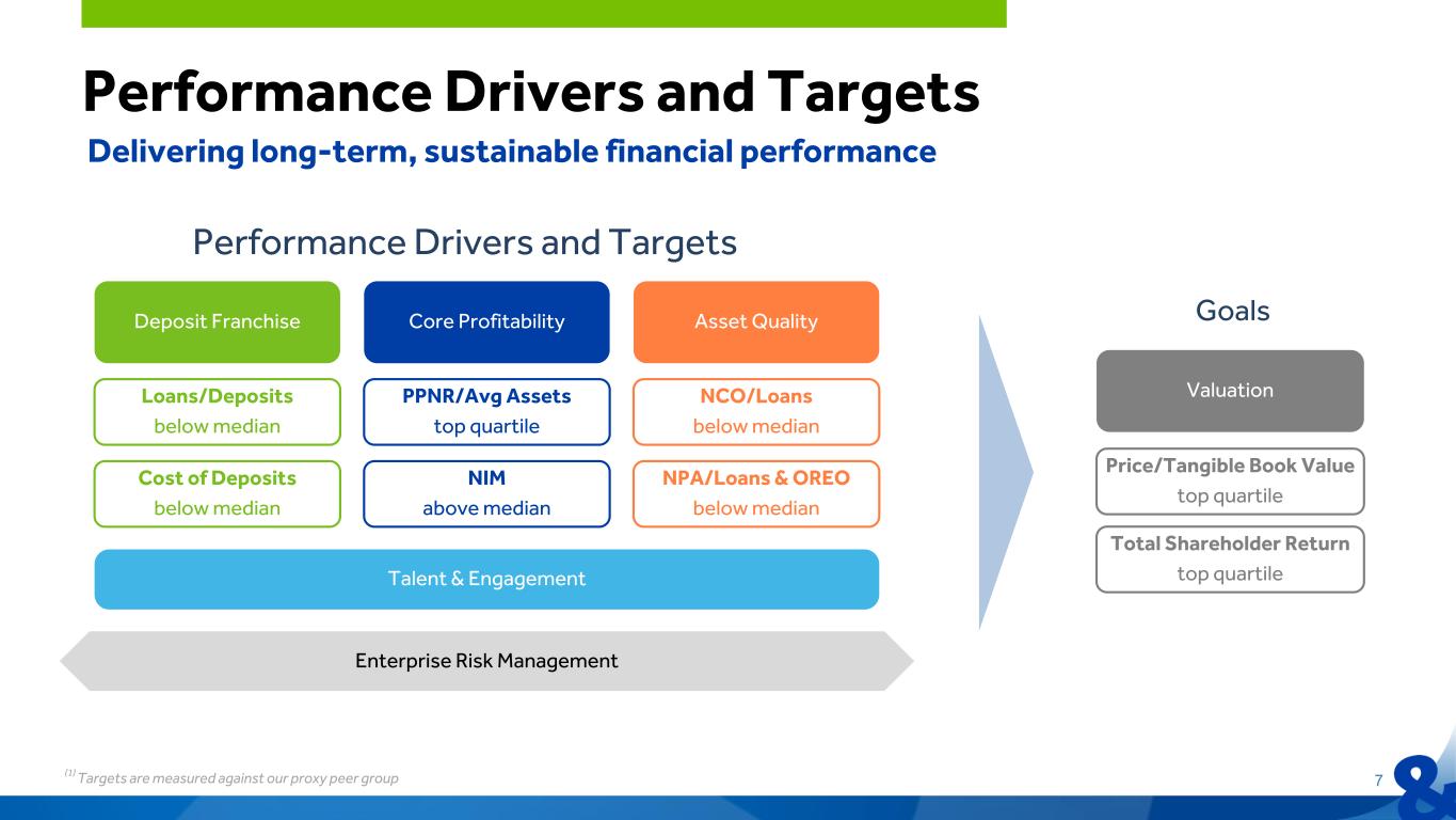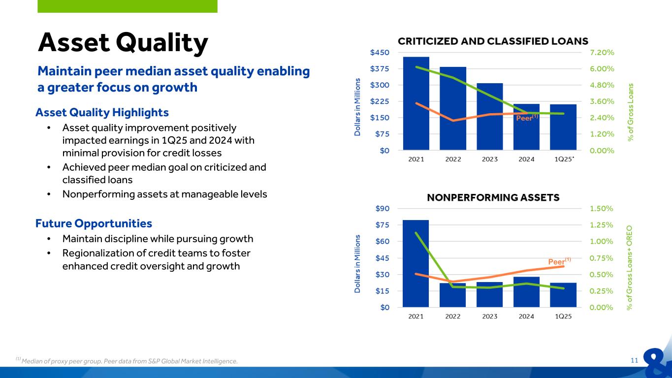Strategic Priorities Positioned to execute on customer growth strategies to improve operating leverage Maintain peer median asset quality enabling a greater focus on growth Strategically positioned to capitalize on targeted M&A opportunities