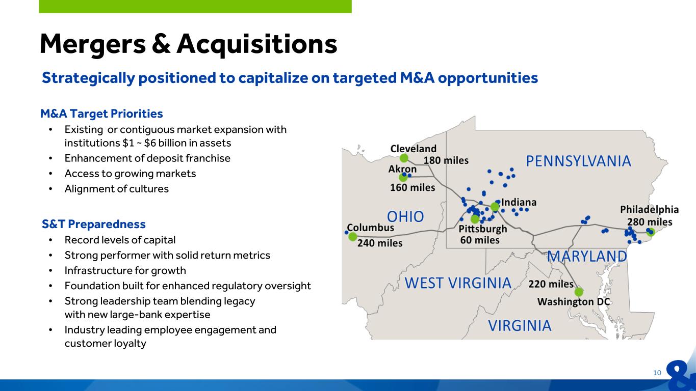 Forward Looking Statements and Risk Factors This information contains or incorporates statements that we believe are “forward-looking statements” within the meaning of the Private Securities Litigation Reform Act of 1995. Forward-looking statements generally relate to our financial condition, results of operations, plans, objectives, outlook for earnings, revenues, expenses, capital and liquidity levels and ratios, asset levels, asset quality, financial position and other matters regarding or affecting S&T and its future business and operations. Forward-looking statements are typically identified by words or phrases such as “will likely result,” “expect,” “anticipate,” “estimate,” “forecast,” “project,” “intend,” “believe,” “assume,” “strategy,” “trend,” “plan,” “outlook,” “outcome,” “continue,” “remain,” “potential,” “opportunity,” “comfortable,” “current,” “position,” “maintain,” “sustain,” “seek,” “achieve” and variations of such words and similar expressions, or future or conditional verbs such as “will,” “would,” “should,” “could” or “may.” Although we believe the assumptions upon which these forward-looking statements are based are reasonable, any of these assumptions could prove to be inaccurate and the forward-looking statements based on these assumptions could be incorrect. The matters discussed in these forward-looking statements are subject to various risks, uncertainties and other factors that could cause actual results and trends to differ materially from those made, projected or implied in or by the forward-looking statements depending on a variety of uncertainties or other factors including, but not limited to: credit losses and the credit risk of our commercial and consumer loan products; changes in the level of charge- offs and changes in estimates of the adequacy of the allowance for credit losses, or ACL; cybersecurity concerns; rapid technological developments and changes; operational risks or risk management failures by us or critical third parties, including fraud risk; our ability to manage our reputational risks; sensitivity to the interest rate environment, a rapid increase in interest rates or a change in the shape of the yield curve; a change in spreads on interest-earning assets and interest-bearing liabilities; regulatory supervision and oversight, including changes in regulatory capital requirements and our ability to address those requirements; unanticipated changes in our liquidity position; unanticipated changes in regulatory and governmental policies impacting interest rates and financial markets; changes in accounting policies, practices or guidance; legislation affecting the financial services industry as a whole, and S&T, in particular; developments affecting the industry and the soundness of financial institutions and further disruption to the economy and U.S. banking system; the outcome of pending and future litigation and governmental proceedings; increasing price and product/service competition; the ability to continue to introduce competitive new products and services on a timely, cost-effective basis; managing our internal growth and acquisitions; the possibility that the anticipated benefits from acquisitions cannot be fully realized in a timely manner or at all, or that integrating the acquired operations will be more difficult, disruptive or costly than anticipated; containing costs and expenses; reliance on significant customer relationships; an interruption or cessation of an important service by a third-party provider; our ability to attract and retain talented executives and other employees; general economic or business conditions, including the strength of regional economic conditions in our market area; ESG practices and disclosures, including climate change, hiring practices, the diversity of the work force and racial and social justice issues; deterioration of the housing market and reduced demand for mortgages; deterioration in the overall macroeconomic conditions or the state of the banking industry that could warrant further analysis of the carrying value of goodwill and could result in an adjustment to its carrying value resulting in a non-cash charge to net income; the stability of our core deposit base and access to contingency funding; re- emergence of turbulence in significant portions of the global financial and real estate markets that could impact our performance, both directly, by affecting our revenues and the value of our assets and liabilities, and indirectly, by affecting the economy generally and access to capital in the amounts, at the times and on the terms required to support our future businesses and geopolitical tensions and conflicts between nations. Many of these factors, as well as other factors, are described in our Annual Report on Form 10-K for the year ended December 31, 2024, including Part I, Item 1A-"Risk Factors" and any of our subsequent filings with the SEC. Forward-looking statements are based on beliefs and assumptions using information available at the time the statements are made. We caution you not to unduly rely on forward-looking statements because the assumptions, beliefs, expectations and projections about future events may, and often do, differ materially from actual results. Any forward-looking statement speaks only as to the date on which it is made, and we undertake no obligation to update any forward-looking statement to reflect developments occurring after the statement is made. Non-GAAP Financial Measures In addition to the traditional measures presented in accordance with Generally Accepted Accounting Principles (GAAP), S&T management uses and this presentation contains or references certain non-GAAP financial measures, such as net interest income on a fully taxable equivalent basis. S&T believes these non-GAAP financial measures provide information useful to in