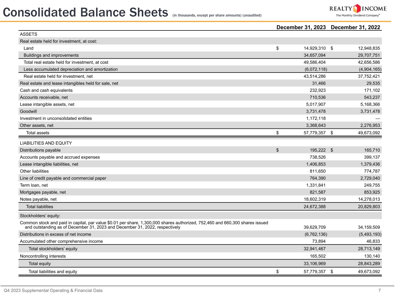EX-99.2 3 realtyincomeq42023supple.htm EX-99.2 realtyincomeq42023supple