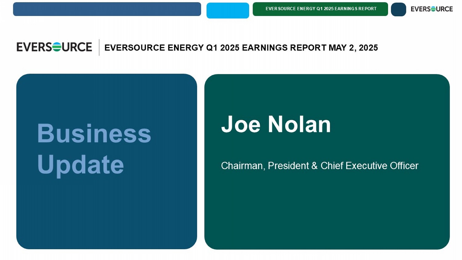 EVERSOURCE ENERGY Q1 2025 EARNINGS REPORT EVERSOURCE ENERGY Q1 2025 EARNINGS REPORT MAY 2, 2025 Chairman, President & Chief Executive Officer Joe Nolan Business Update