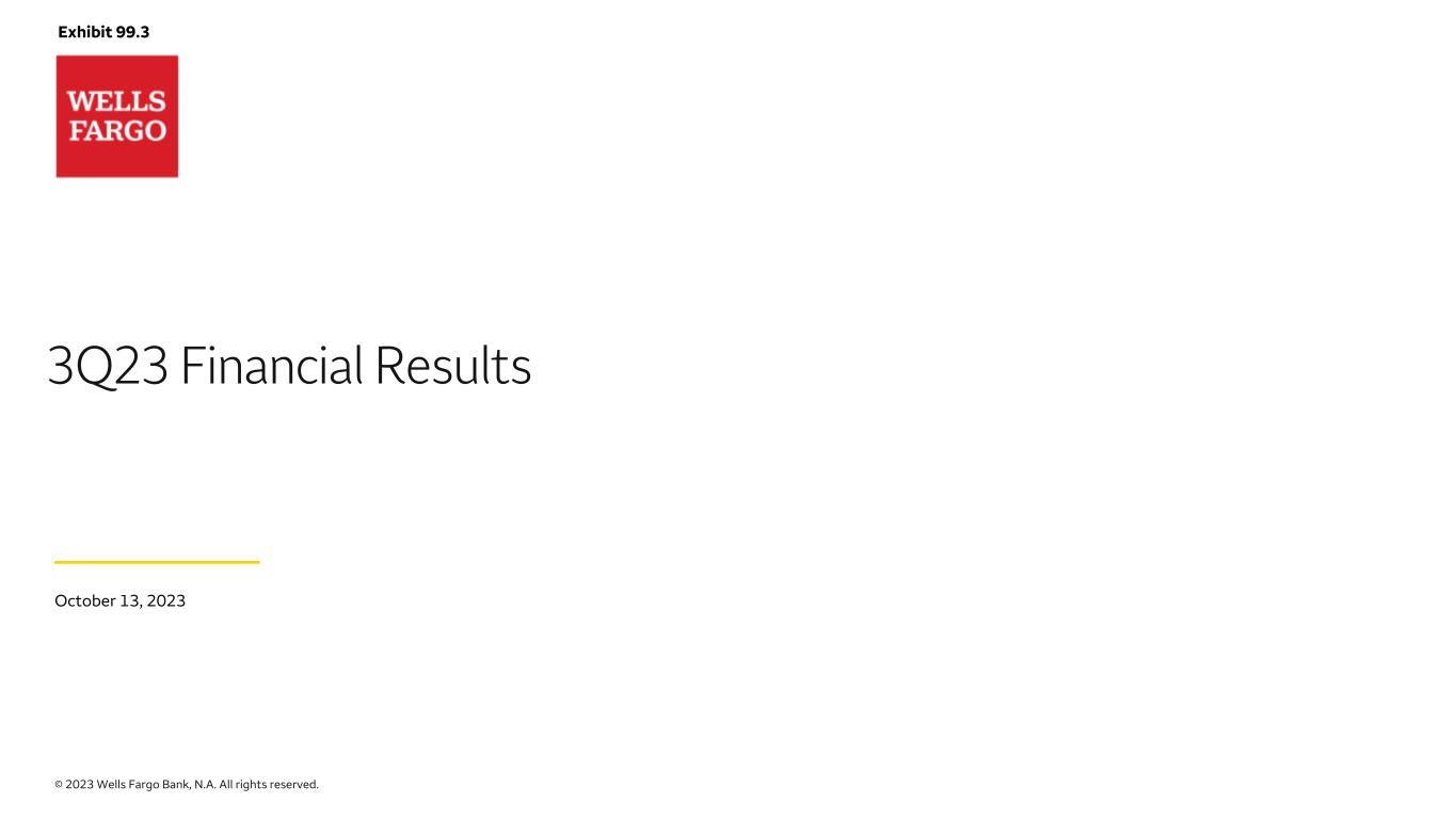 © 2023 Wells Fargo Bank, N.A. All rights reserved. 3Q23 Financial Results October 13, 2023 Exhibit 99.3
