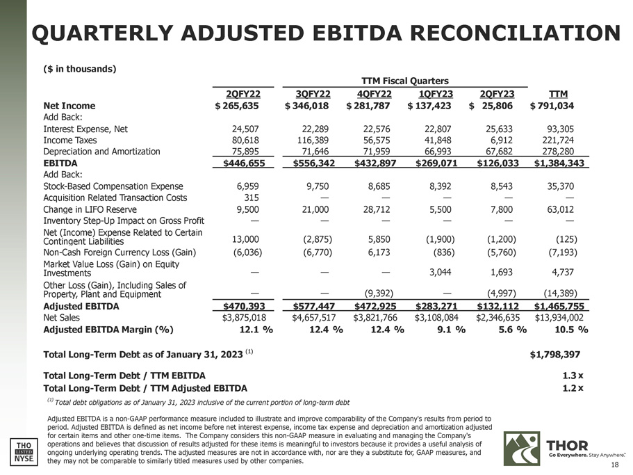 www.thorindustries.com SECOND QUARTER OF FISCAL 2023 FINANCIAL RESULTS