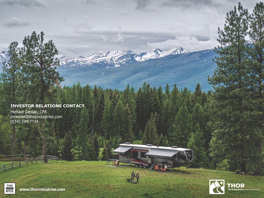 www.thorindustries.com INVESTOR RELATIONS CONTACT Michael Cieslak, CFA mcieslak@thorindustries.com (574) 294 - 7724