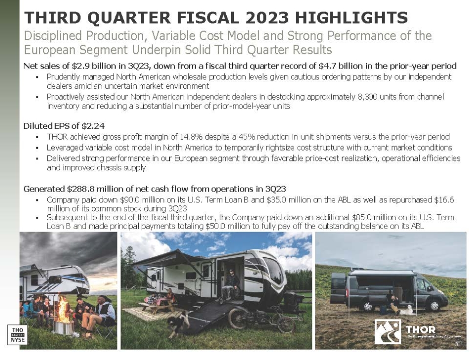 www.thorindustries.com THIRD QUARTER OF FISCAL 2023 FINANCIAL RESULTS