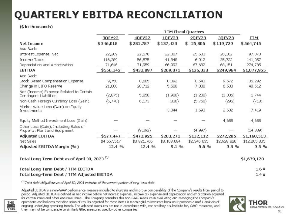 www.thorindustries.com INVESTOR RELATIONS CONTACT Michael Cieslak, CFA mcieslak@thorindustries.com (574) 294 - 7724
