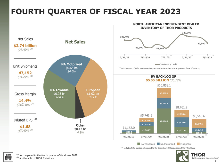 www.thorindustries.com FOURTH QUARTER OF FISCAL 2023 FINANCIAL RESULTS