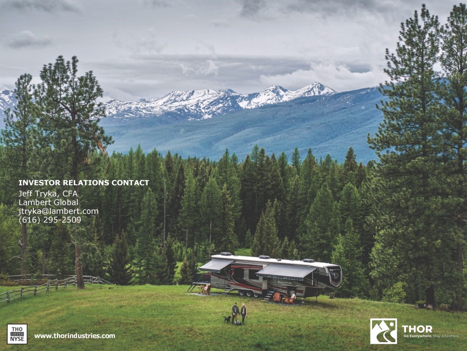 www.thorindustries.com INVESTOR RELATIONS CONTACT Jeff Tryka, CFA Lambert Global jtryka@lambert.com (616) 295 - 2509