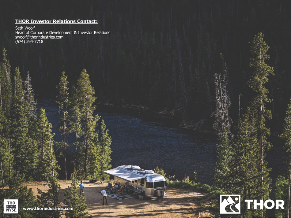www.thorindustries.com THOR Investor Relations Contact: Seth Woolf Head of Corporate Development & Investor Relations swoolf@thorindustries.com (574) 294 - 7718