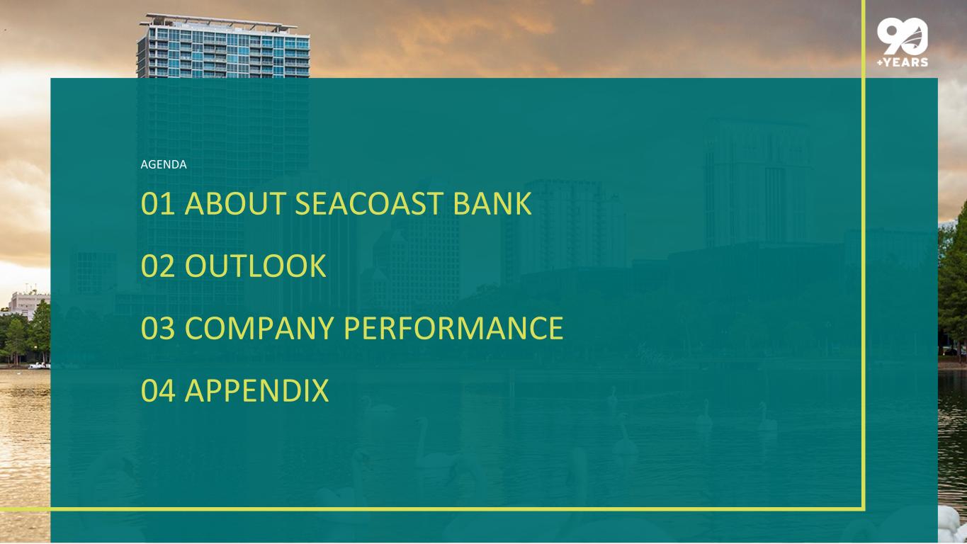 01 ABOUT SEACOAST BANK 02 OUTLOOK 03 COMPANY PERFORMANCE 04 APPENDIX AGENDA