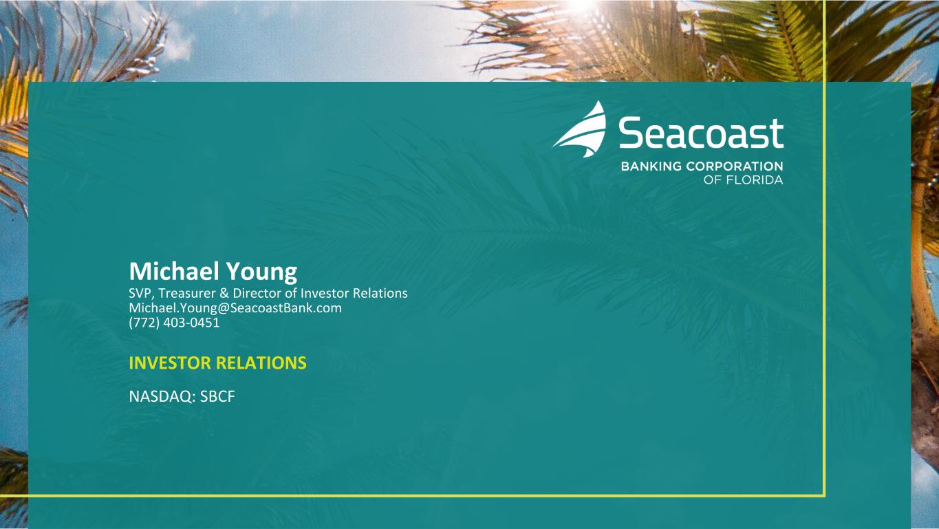 Michael Young SVP, Treasurer & Director of Investor Relations Michael.Young@SeacoastBank.com (772) 403-0451 INVESTOR RELATIONS NASDAQ: SBCF
