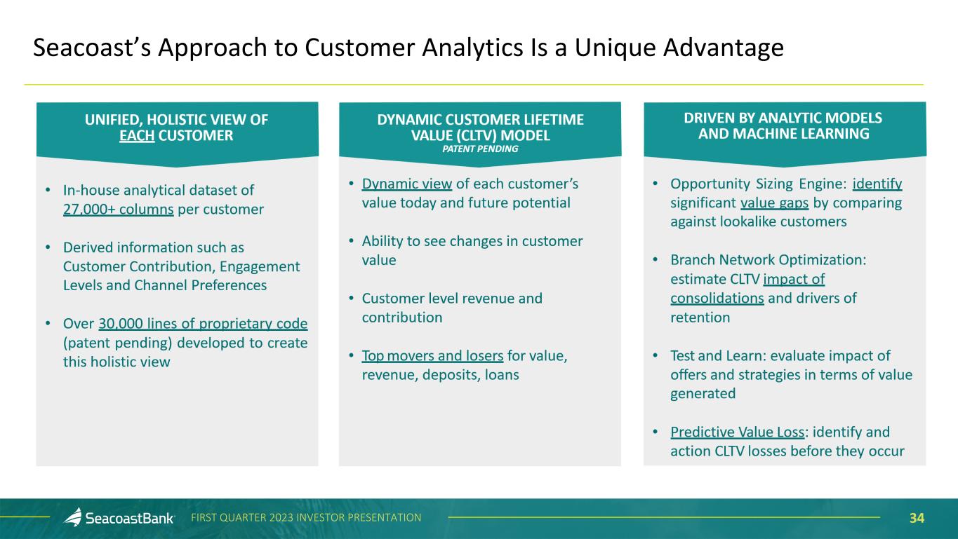 34FIRST QUARTER 2023 INVESTOR PRESENTATION Seacoast’s Approach to Customer Analytics Is a Unique Advantage
