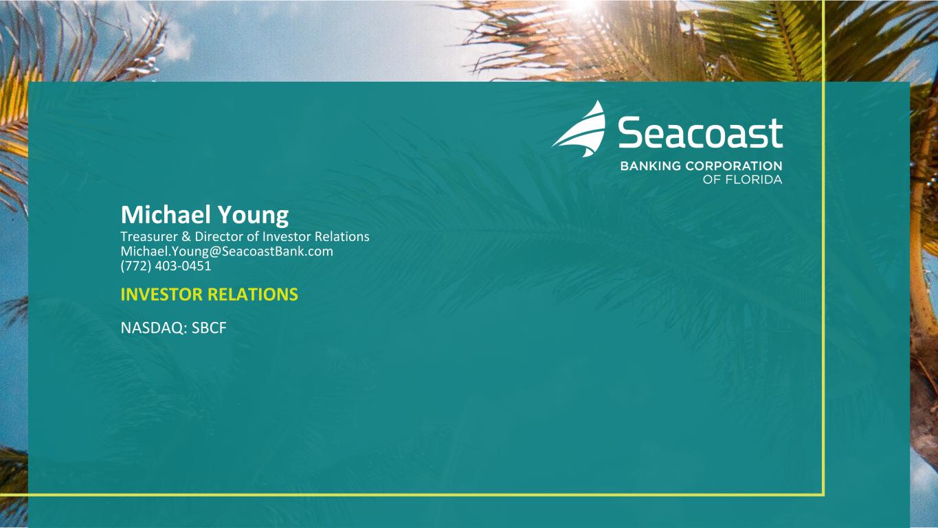 Michael Young Treasurer & Director of Investor Relations Michael.Young@SeacoastBank.com (772) 403-0451 INVESTOR RELATIONS NASDAQ: SBCF