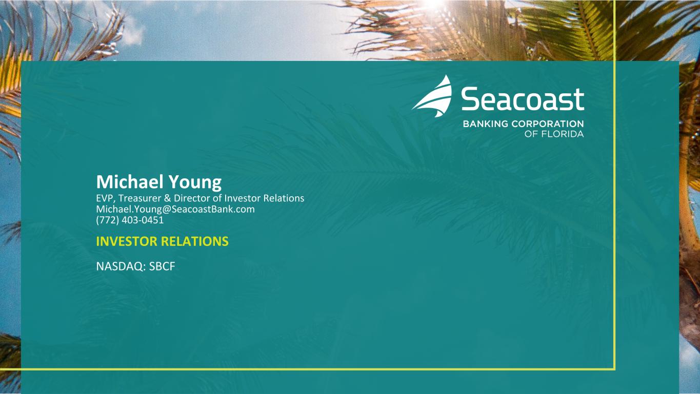 Michael Young EVP, Treasurer & Director of Investor Relations Michael.Young@SeacoastBank.com (772) 403-0451 INVESTOR RELATIONS NASDAQ: SBCF