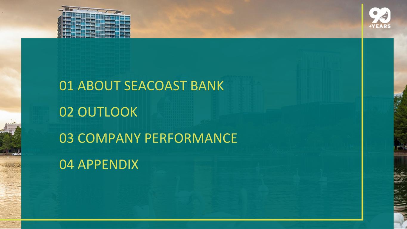 01 ABOUT SEACOAST BANK 02 OUTLOOK 03 COMPANY PERFORMANCE 04 APPENDIX