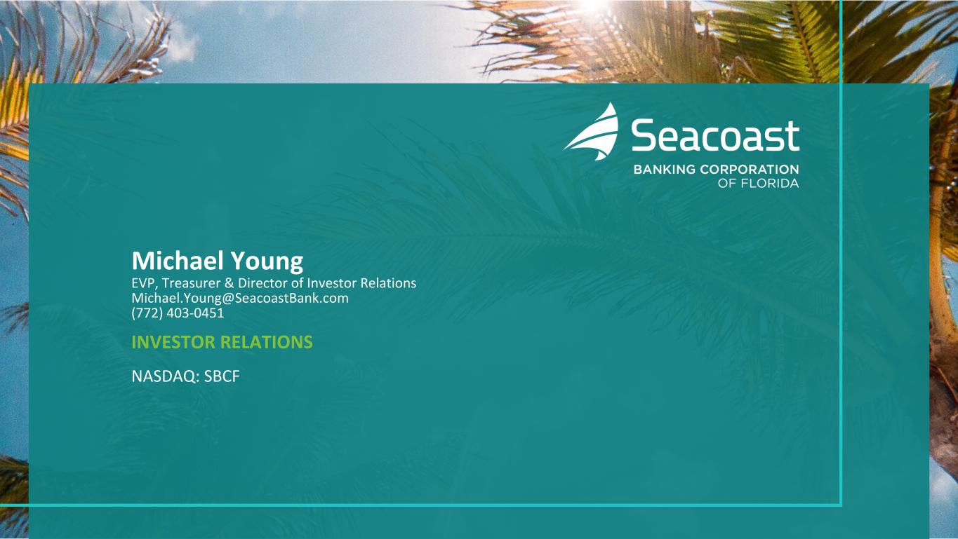 Michael Young EVP, Treasurer & Director of Investor Relations Michael.Young@SeacoastBank.com (772) 403-0451 INVESTOR RELATIONS NASDAQ: SBCF