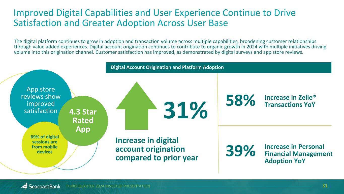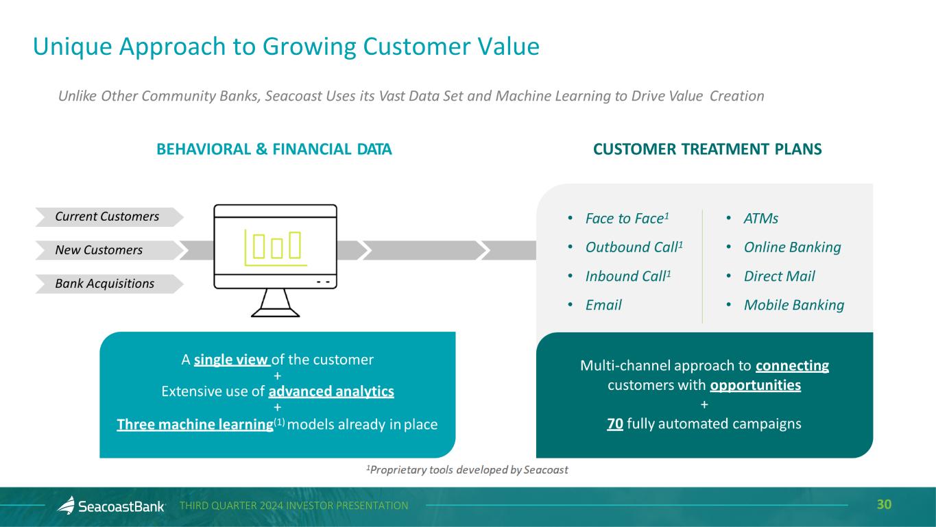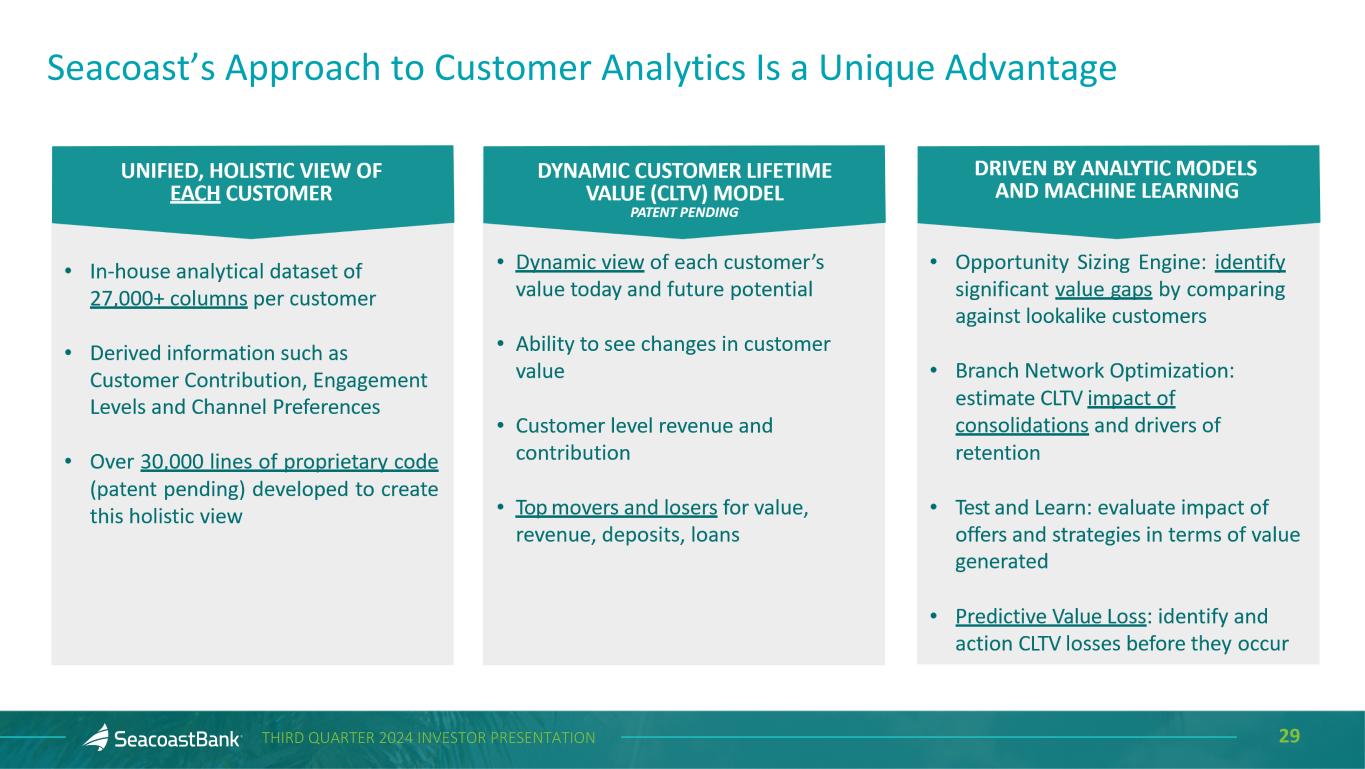 29THIRD QUARTER 2024 INVESTOR PRESENTATION Seacoast’s Approach to Customer Analytics Is a Unique Advantage