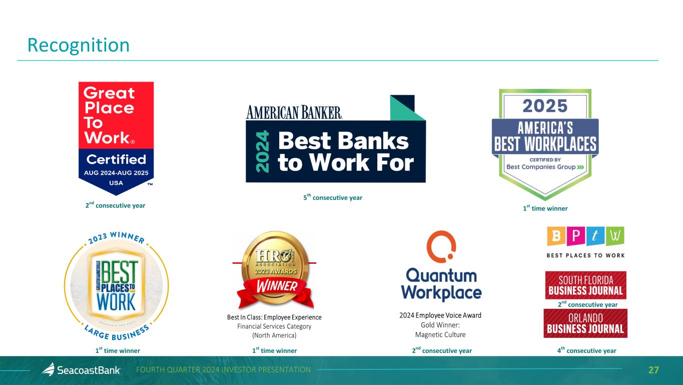 27FOURTH QUARTER 2024 INVESTOR PRESENTATION Recognition 2nd consecutive year 4th consecutive year 1st time winner 5th consecutive year 1st time winner 1st time winner 2nd consecutive year 2nd consecutive year