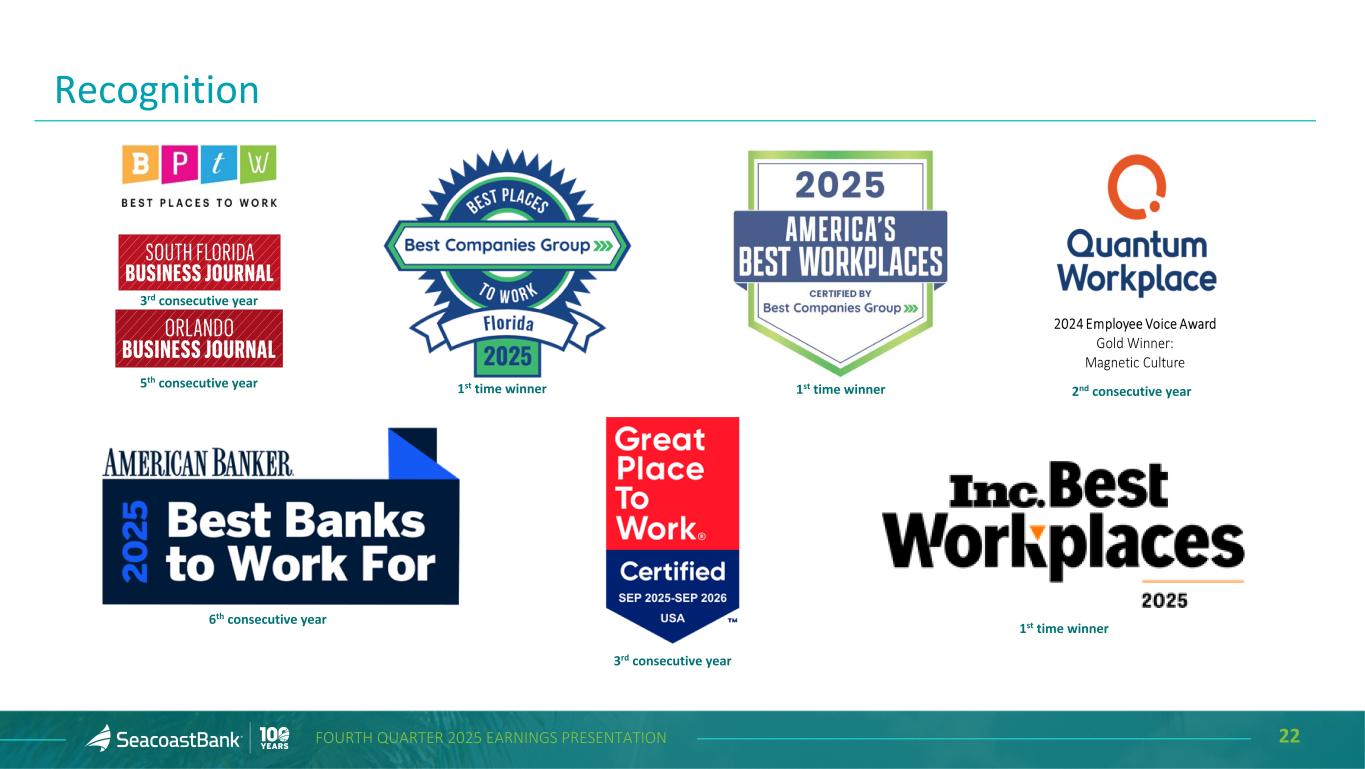 22FOURTH QUARTER 2025 EARNINGS PRESENTATION Recognition 3rd consecutive year 5th consecutive year 1st time winner 6th consecutive year 2nd consecutive year 3rd consecutive year 1st time winner 1st time winner