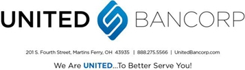 United Bancorp, Inc. is headquartered in Martins Ferry, Ohio and has total assets of $825.5 million and total shareholder’s equity of $65.5 million as of September 30, 2024. Through its single bank charter, Unified Bank, the Company has eighteen banking offices that serve the Ohio Counties of Athens, Belmont, Carroll, Fairfield, Harrison, Jefferson and Tuscarawas and Marshall County in West Virginia. United Bancorp, Inc. trades on the NASDAQ Capital Market tier of the NASDAQ Stock Market under the symbol UBCP, Cusip #909911109.
