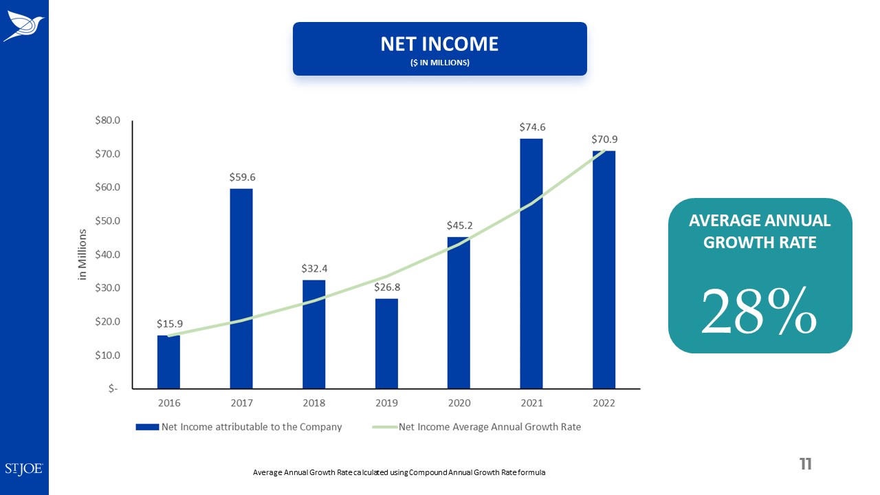 NET INCOME  ($ IN MILLIONS)  11  AVERAGE ANNUAL GROWTH RATE  28%  Average Annual Growth Rate calculated using Compound Annual Growth Rate formula