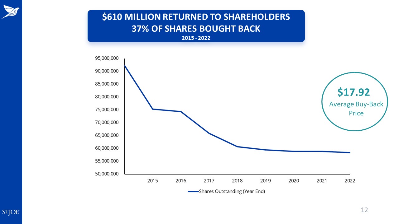 $17.92  Average Buy-Back Price   12  $610 MILLION RETURNED TO SHAREHOLDERS  37% OF SHARES BOUGHT BACK  2015 - 2022