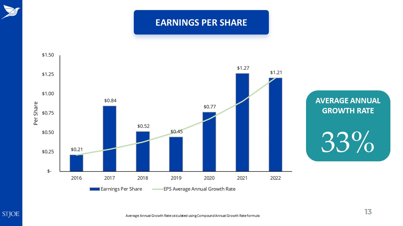 EARNINGS PER SHARE  13  AVERAGE ANNUAL GROWTH RATE  33%  Average Annual Growth Rate calculated using Compound Annual Growth Rate formula