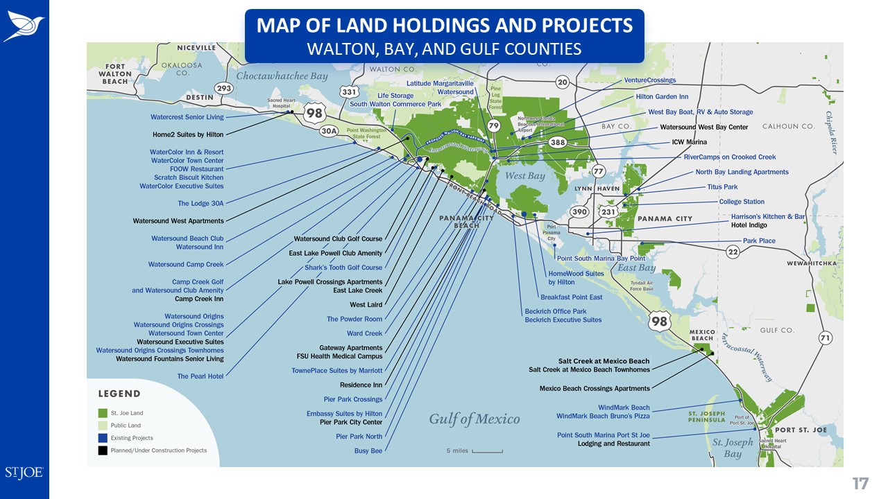 17  LAND HOLDINGS AND DEVELOPMENTS  MAP OF LAND HOLDINGS AND PROJECTS  WALTON, BAY, AND GULF COUNTIES