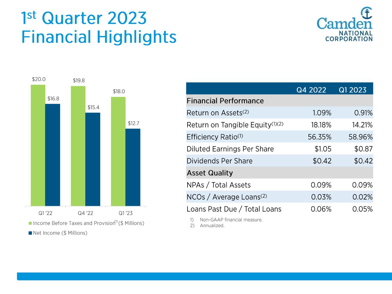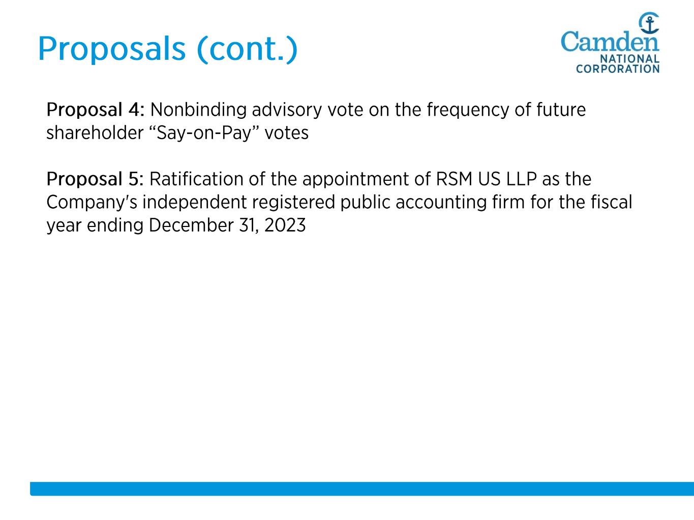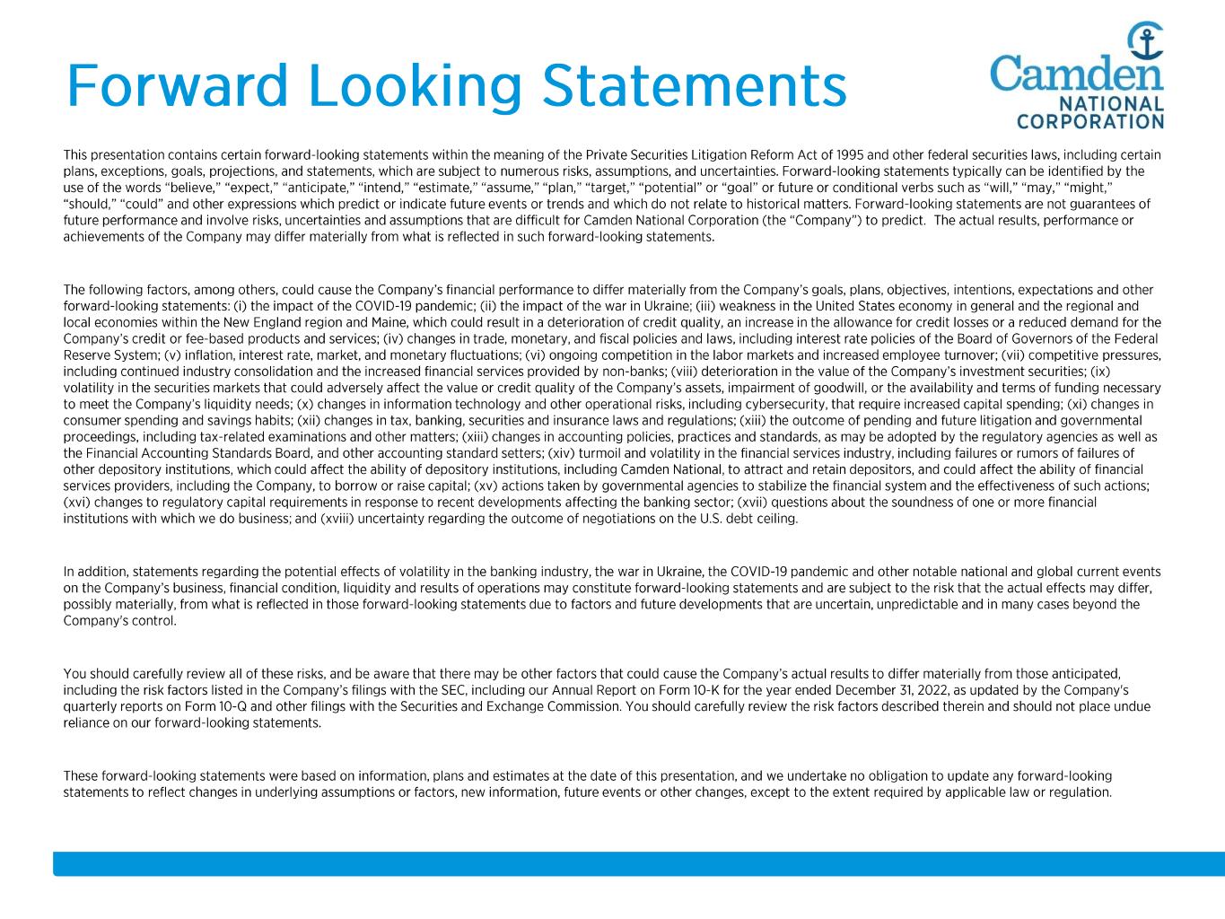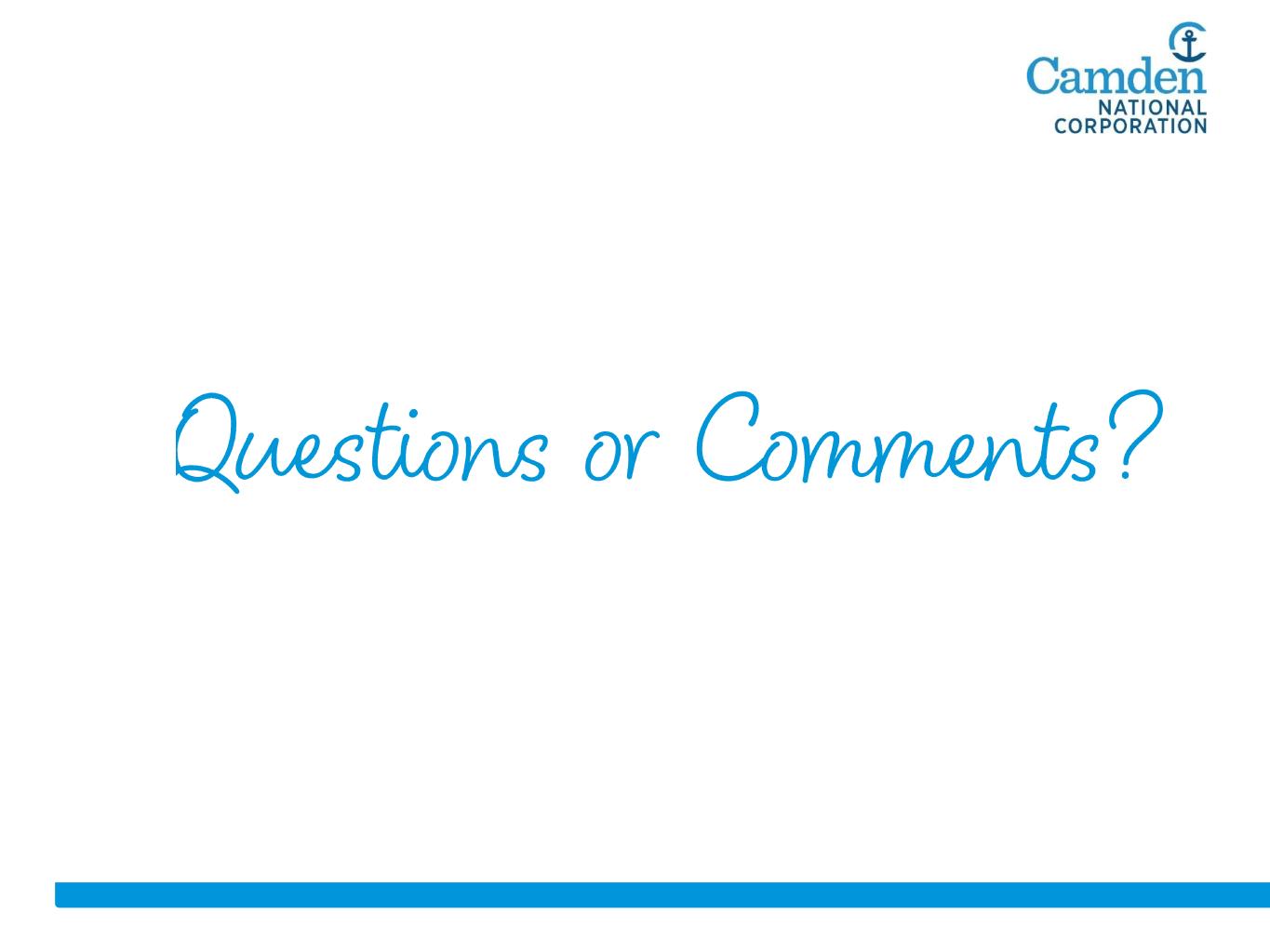 -100% -50% 0% 50% 100% 150% 200% 250% 300% 5/11/2008 5/11/2009 5/11/2010 5/11/2011 5/11/2012 5/11/2013 5/11/2014 5/11/2015 5/11/2016 5/11/2017 5/11/2018 5/11/2019 5/11/2020 5/11/2021 5/11/2022 5/11/2023 CAC S&P SmallCap Banks S&P U.S. BMI Banks 51.1% 20.6% 128.5% • • •