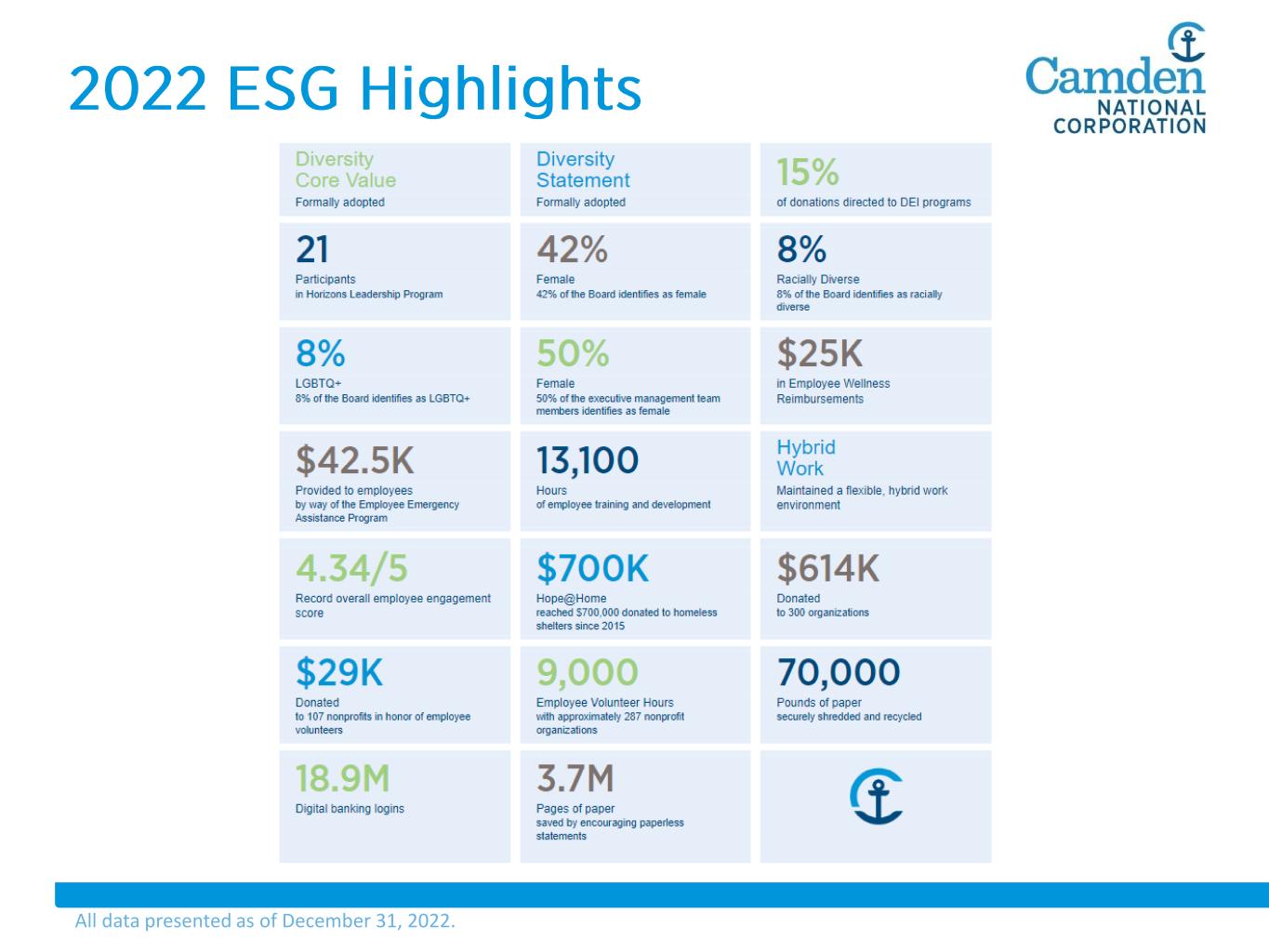 All data presented as of December 31, 2022.