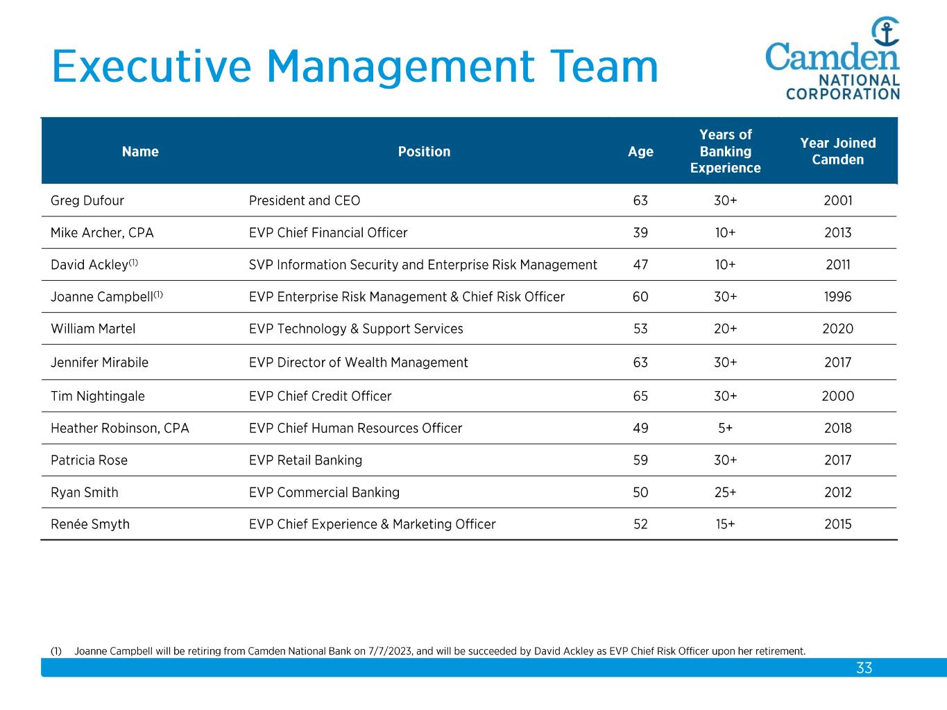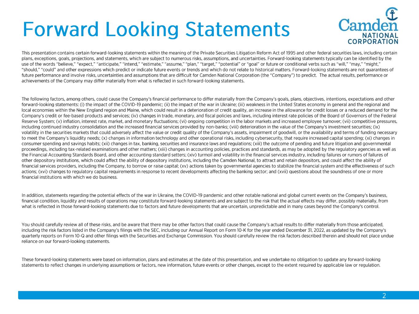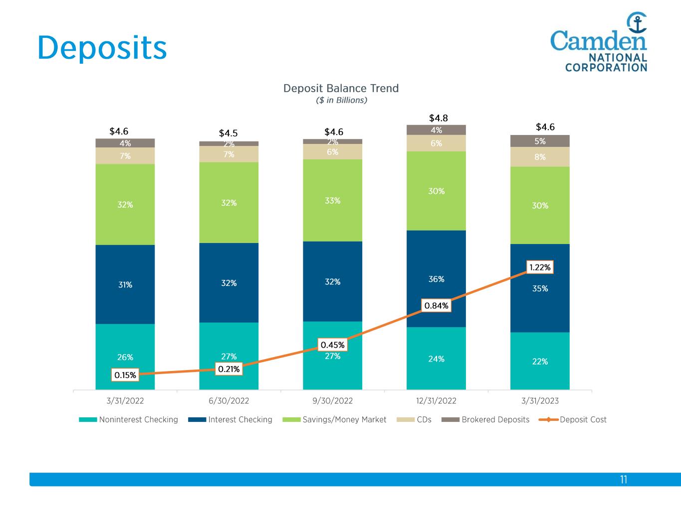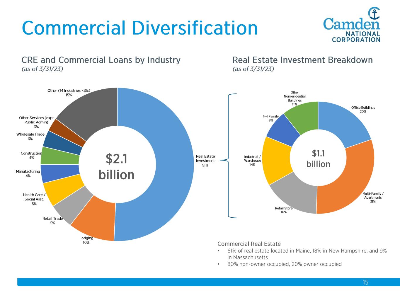 $2.3 $2.2 $2.3 $2.3 $2.6 $2.6 $2.8 $3.7 $3.9 $4.1 $4.3 $4.4 $4.9 $5.5 $5.7 2008 2009 2010 2011 2012 2013 2014 2015 2016 2017 2018 2019 2020 2021 2022 Total Assets $ in billions Acquisitions: 2008 Union Bankshares 2012 Bank of America (14 branches) 2015 The Bank of Maine Organic Growth 58% Acquisition Growth 42%